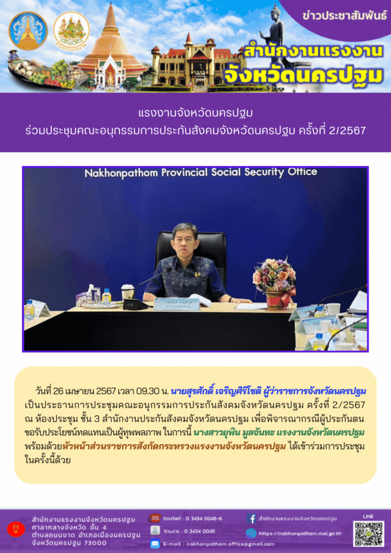 สรจ.นครปฐม ร่วมประชุมคณะอนุกรรมการประกันสังคมจังหวัดนครปฐม ครั้งที่ 2/2567