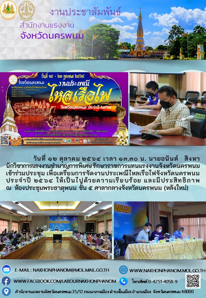 สรจ.นครพนม เข้าร่วมประชุม เพื่อเตรียมการจัดงานประเพณีไหลเรือไฟจังหวัดนครพนมประจำปี ๒๕๖๔