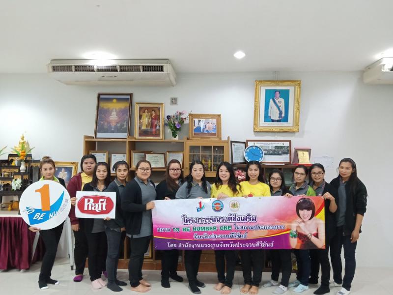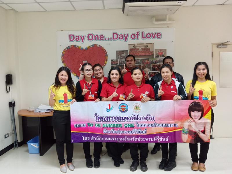 วันที่ 23 มกราคม 2562 นางสาวอังคณา คงศักดิ์ นักวิชาการแรงงานชำนาญการ พร้อมด้วยนางสาวพรรณราย ปานเล็ก นักวิชาการแรงงาน เข้ารณรงค์ส่งเสริมการจัดตั้งชมรม TO BE NUMBER ONE ในสถานประกอบการ ประจำปี พ.ศ. 2562 ในพื้นที่อำเภอกุยบุรีและอำเภอเมือง จังหวัดประจวบคีรีขันธ์ จำนวน 4 แห่ง ได้แก่ (1)บริษัท ผลไม้กระป๋องประจวบ จำกัด (2)บริษัท กุยบุรีผลไม้กระป๋อง จำกัด (3)บริษัท กุยบุรี ฟรุต คัพ จำกัด (4)บริษัท สยามแม็คโคร จำกัด (สาขาประจวบคีรีขันธ์) ทั้งนี้ เจ้าหน้าที่ได้บรรยายสรุปแนวทางการดำเนินงานตามโครงการฯ ซึ่งผลการรณรงค์ฯ สถานประกอบการส่วนใหญ่ ได้ให้ความสนใจเข้าร่วมในการจัดตั้งชมรมฯ