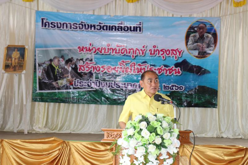 วันที่ 21 มิถุนายน 2561 นายพัลลภ สิงหเสนี ผู้ว่าราชการจังหวัดประจวบคีรีขันธ์ เป็นประธานโครงการ “หน่วยบำบัดทุกข์ บำรุงสุข สร้างรอยยิ้มให้ประชาชน” (โครงการจังหวัดเคลื่อนที่) ประจำปีงบประมาณ 2561 ณ องค์การบริหารส่วนตำบลไชยราช ต.ไชยราช อ.บางสะพานน้อย จังหวัดประจวบคีรีขันธ์ โดยได้มอบนโยบายแก่ส่วนราชการ กำนันผู้ใหญ่บ้าน ฯลฯ ผู้บริหารองค์กรปกครองส่วนท้องถิ่นและแกนนำกลุ่มมวลชนในพื้นที่ มอบอุปกรณ์กีฬา ทุนการศึกษาแก่นักเรียน มอบพันธุ์ปลา นอกจากนี้ นายกเหล่ากาชาดจังหวัดและหัวหน้าส่วนราชการประจำจังหวัดร่วมกันมอบเครื่องอุปโภค-บริโภคให้กับผู้สูงอายุหรือผู้ด้อยโอกาส จำนวน 100 ราย และตรวจเยี่ยมหน่วยงานที่จัดกิจกรรม โดยมีนางสาวกรจิรัฏฐ์ พงจันทร์ศธร แรงงานจังหวัดประจวบคีรีขันธ์ พร้อมข้าราชการและเจ้าหน้าที่สังกัดกระทรวงแรงงานทุกหน่วยงานนำงานด้านแรงงานออกให้บริการในพื้นที่ การเผยแพร่ประชาสัมพันธ์ ข้อมูลข่าวสารด้านแรงาน และตอบปัญหาด้านแรงงาน เป็นต้น