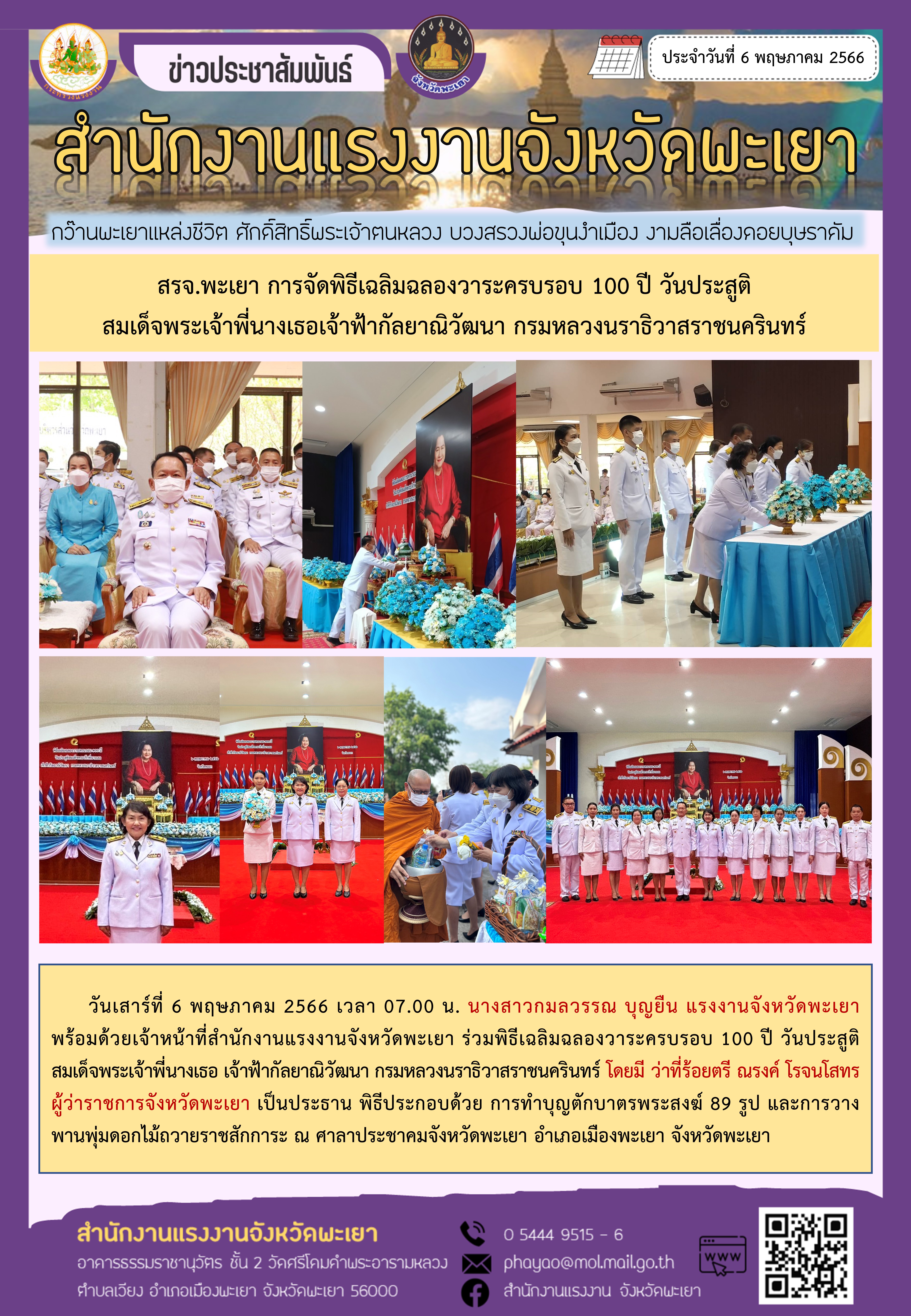 สรจ.พะเยา การจัดพิธีเฉลิมฉลองวาระครบรอบ 100 ปี วันประสูติ สมเด็จพระเจ้าพี่นางเธอเจ้าฟ้ากัลยาณิวัฒนา กรมหลวงนราธิวาสราชนครินทร์