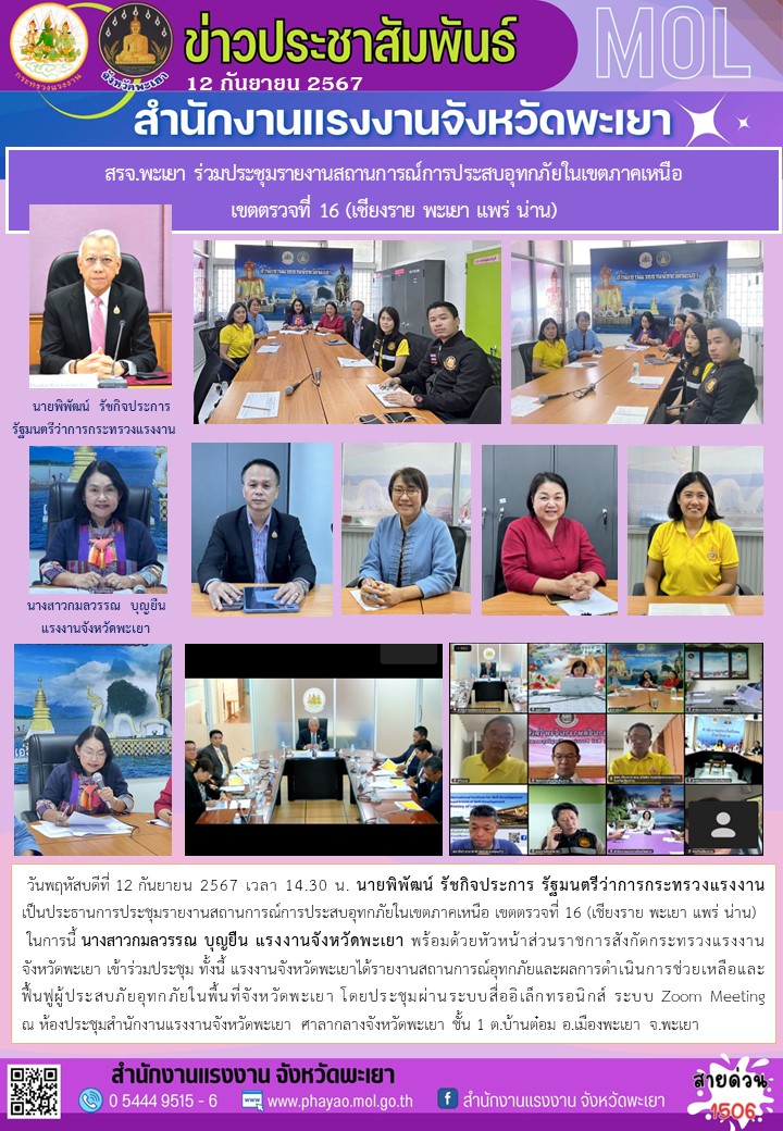 สรจ.พะเยา ร่วมประชุมรายงานสถานการณ์การประสบอุทกภัยในเขตภาคเหนือ เขตตรวจที่ 16 (เชียงราย พะเยา แพร่ น่าน)