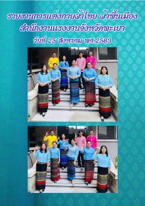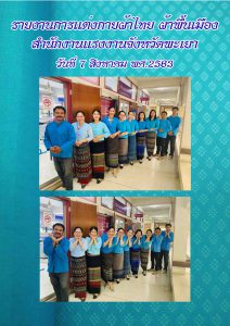 สรจ.พะเยา ร่วมรณรงค์แต่งกายด้วยผ้าไทยและผ้าพื้นเมืองทุกวันอังคารและวันศุกร์ ตามมติคณะรัฐมนตรี เรื่อง มาตรการส่งเสริมและสนับสนุนการใช้และสวมใส่ผ้าไทย เพื่อสืบสานพระราชปณิธานของสมเด็จพระนางเจ้าสิริกิติ์ พระบรมราชินีนาถ พระบรมราชชนนีพันปีหลวง ในการอนุรักษ์ศิลป์ผ้าถิ่นไทย และรณรงค์ให้เกิดค่านิยมการใช้ผลิตภัณฑ์ที่ทำจากผ้าทอซึ่งเป็นภูมิปัญญาของคนไทย ประจำเดือนสิงหาคม พ.ศ.2563