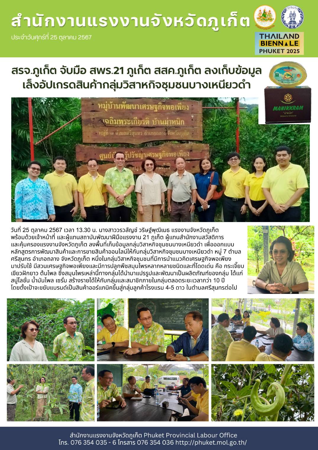 สรจ.ภูเก็ต จับมือ สพร.21 ภูเก็ต สสค.ภูเก็ต ลงเก็บข้อมูล เล็งอัปเกรดสินค้ากลุ่มวิสาหกิจชุมชนบางเหนียวดำ