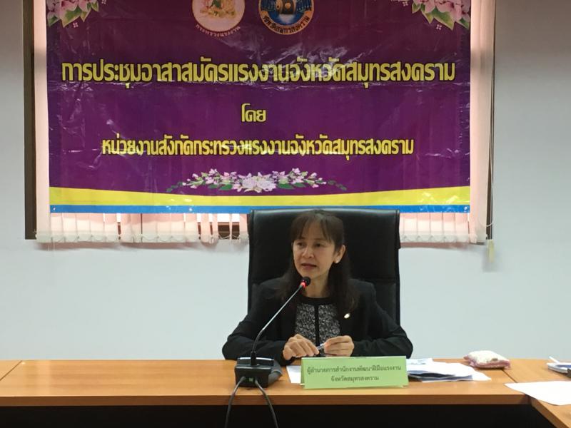 เมื่อวันที่ ๒๘ กุมภาพันธ์ ๒๕๖๐ เวลา ๙.๓๐ น. สนง.แรงงาน จ.สมุทรสงคราม จัดประชุมแกนนำ อสร.ระดับตำบล จ.สมุทรสงคราม ประจำเดือนกุมภาพันธ์ ๒๕๖๐ ณ ห้องประชุมบางคนที ชั้น ๓ ศาลากลางหวัดสมุทรสงคราม เพื่อชี้แจงภารกิจเร่งด่วนต่างๆ และแนวทางการปฏิบัติงานในเดือนมีนาคม ๒๕๖๐ โดยมี นางสาวสุมาลี สุวรรณเกต ผอ.สำนักงานพัฒนาฝีมือแรงงานสมุทรสงคราม พร้อมด้วยเจ้าหน้าที่ของหน่วยงานในสังกัดกระทรวงแรงงานเข้าร่วมชี้แจงมีผู้เข้าร่วมประชุม จำนวน ๔๐ คน