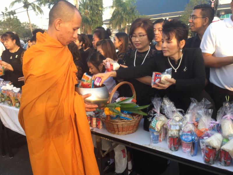 ๑. เวลา ๖.๓๐ น.ร่วมพิธีทำบุญตักบาตรข้าวสารอาหารแห้งพระสงฆ์ จำนวน ๘๙ รูป ณ ลานหน้าศาลากลางจังหวัดสมุทรสงคราม