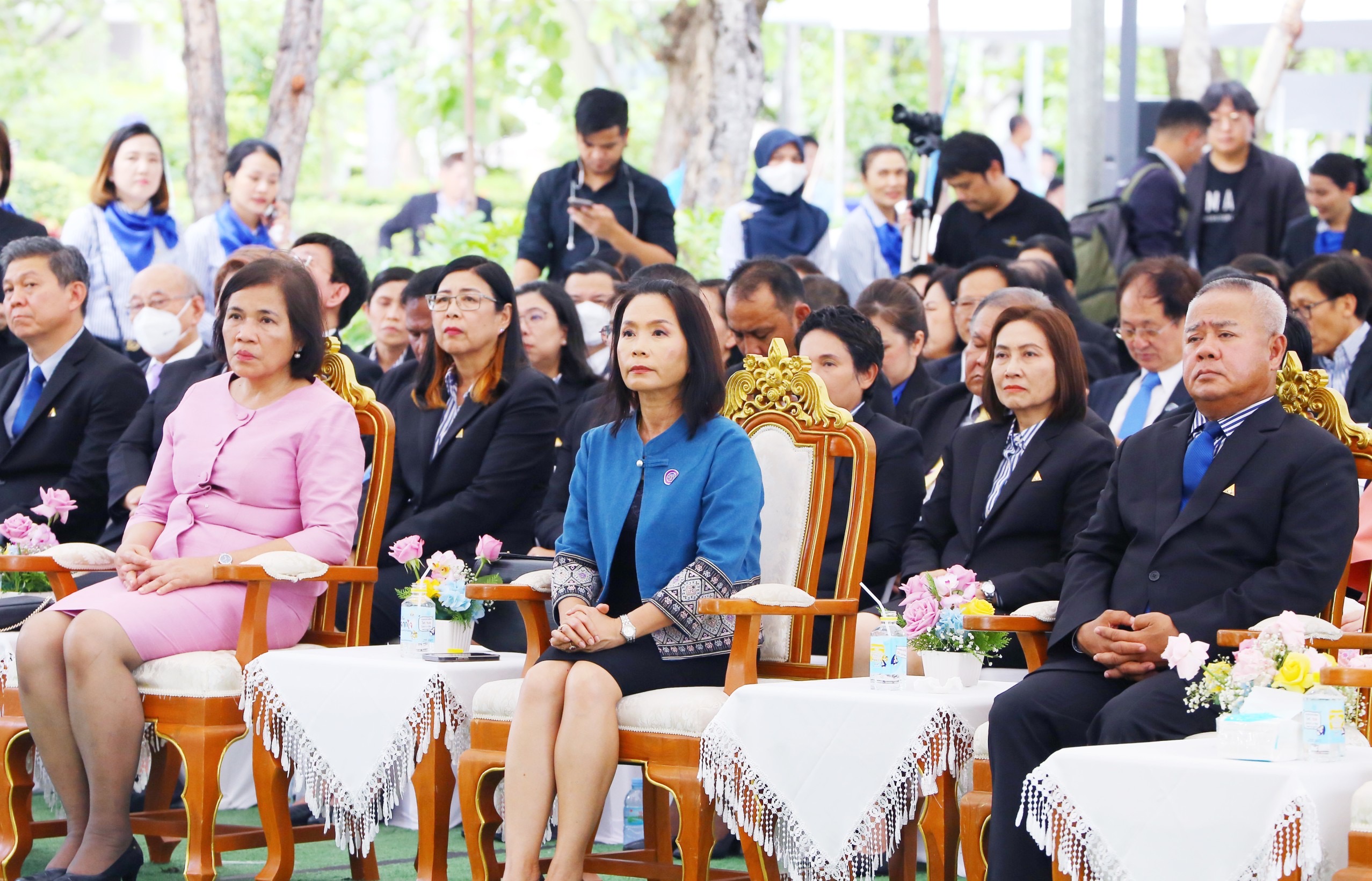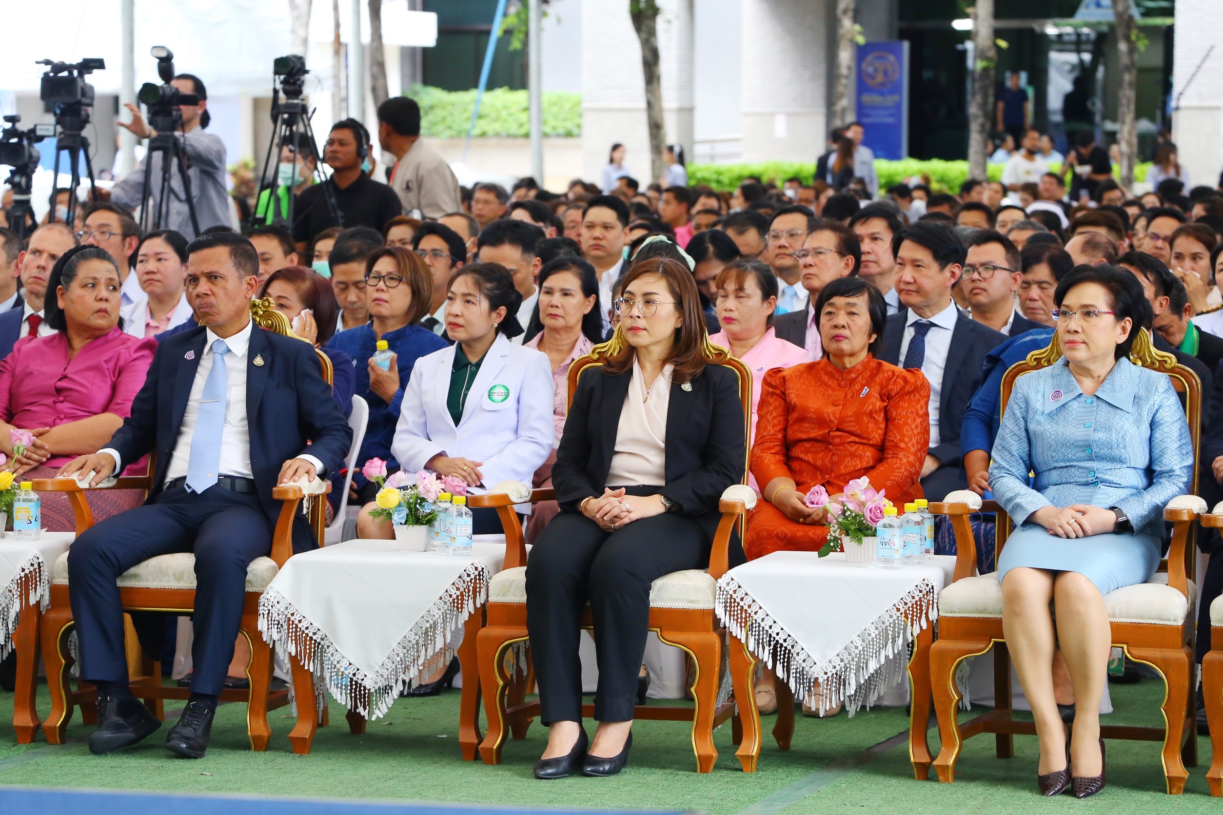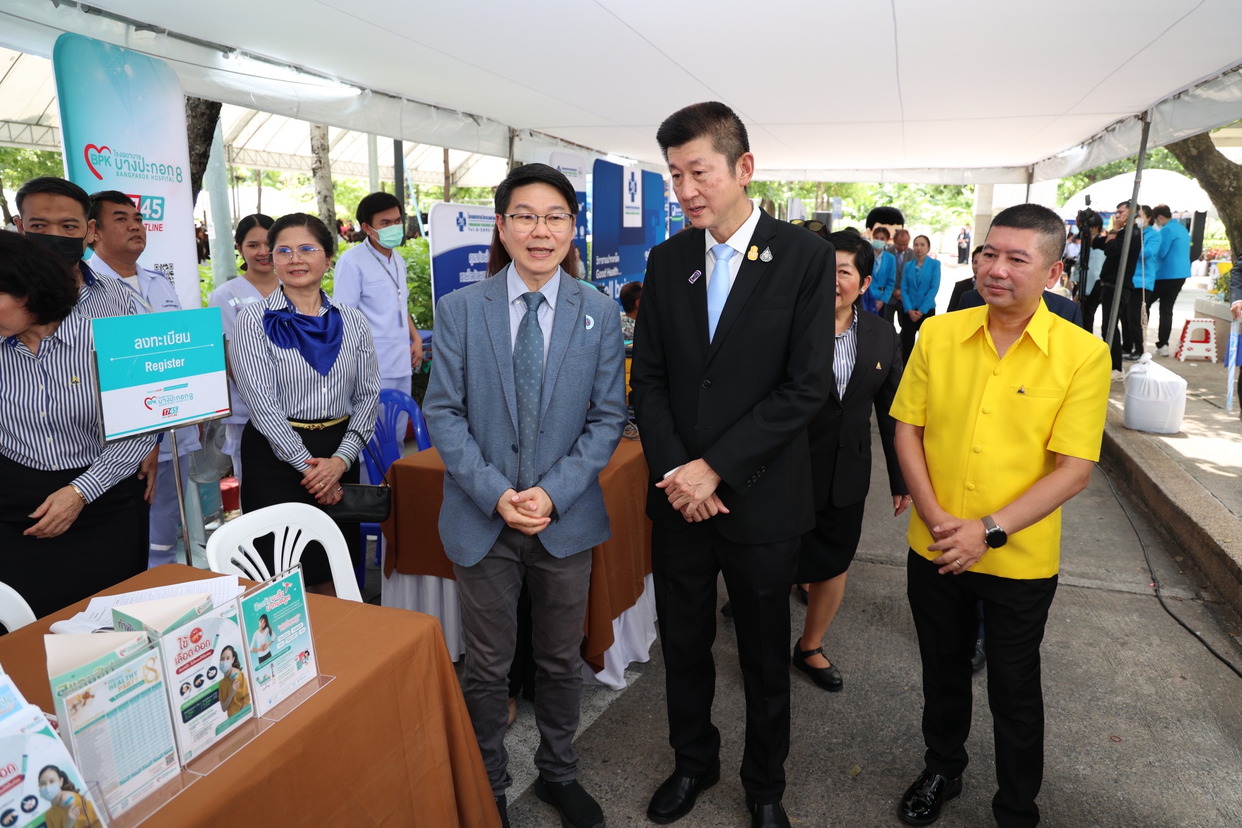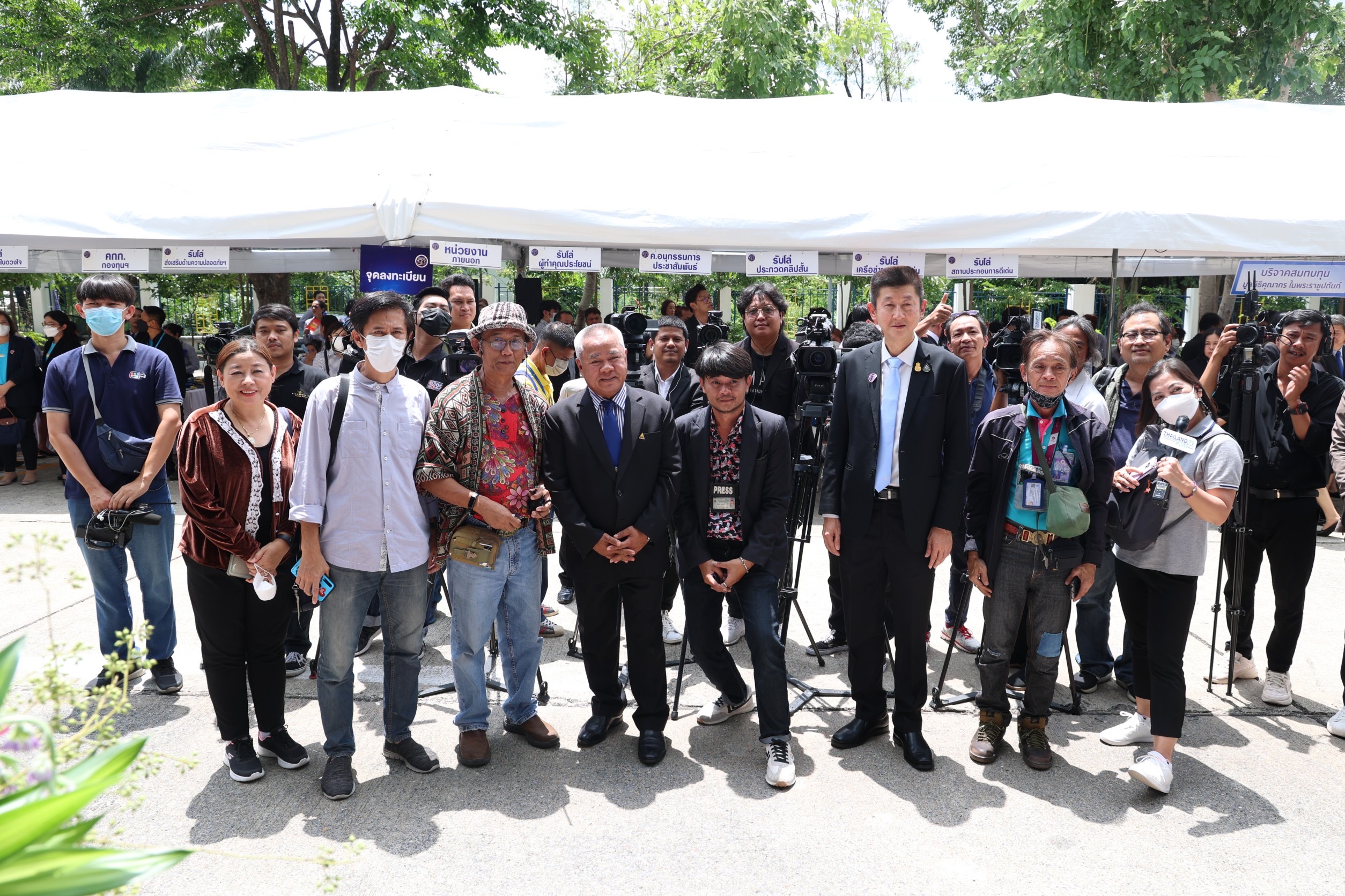 On the morning of the event, the participants paid homage to the sacred objects and gods. They participated in a Buddhist chanting ceremony and the “Social Security Family” activity by organizing a ceremony to present certificates of honour, plaques, and souvenirs, totaling 272 awards. The awards consisted of three awards for the Social Security Office being a model organization, 15 awards for outstanding personnel in morals and ethics under the Social Security Office, 16 awards for the Social Security Short Clip Contest, 88 awards for outstanding social security network, and 150 awards for people who had submissions to the logo contest. In addition, there was an exhibition at the event and product display booths, as well as being sold by social security network members. There were displays from OTOP product booths, hospital booths providing influenza vaccinations, work displays, and products sold by people undergoing rehabilitation from five worker rehabilitation centers. In the afternoon, there was an opening ceremony for the Social Security Office’s 33rd anniversary and a plaque presentation ceremony. There were 165 awards, consisting of 45 for those who contributed to the Social Security Office in 3 areas: 1) Promoting and supporting social security operations. 2) Promoting health and preventing disease, and 3) Promoting workplace safety or rehabilitation. There were 22 favourite hospital awards, 56 outstanding establishment awards, and 42 workplace safety promotion and prevention awards from the Compensation Fund.