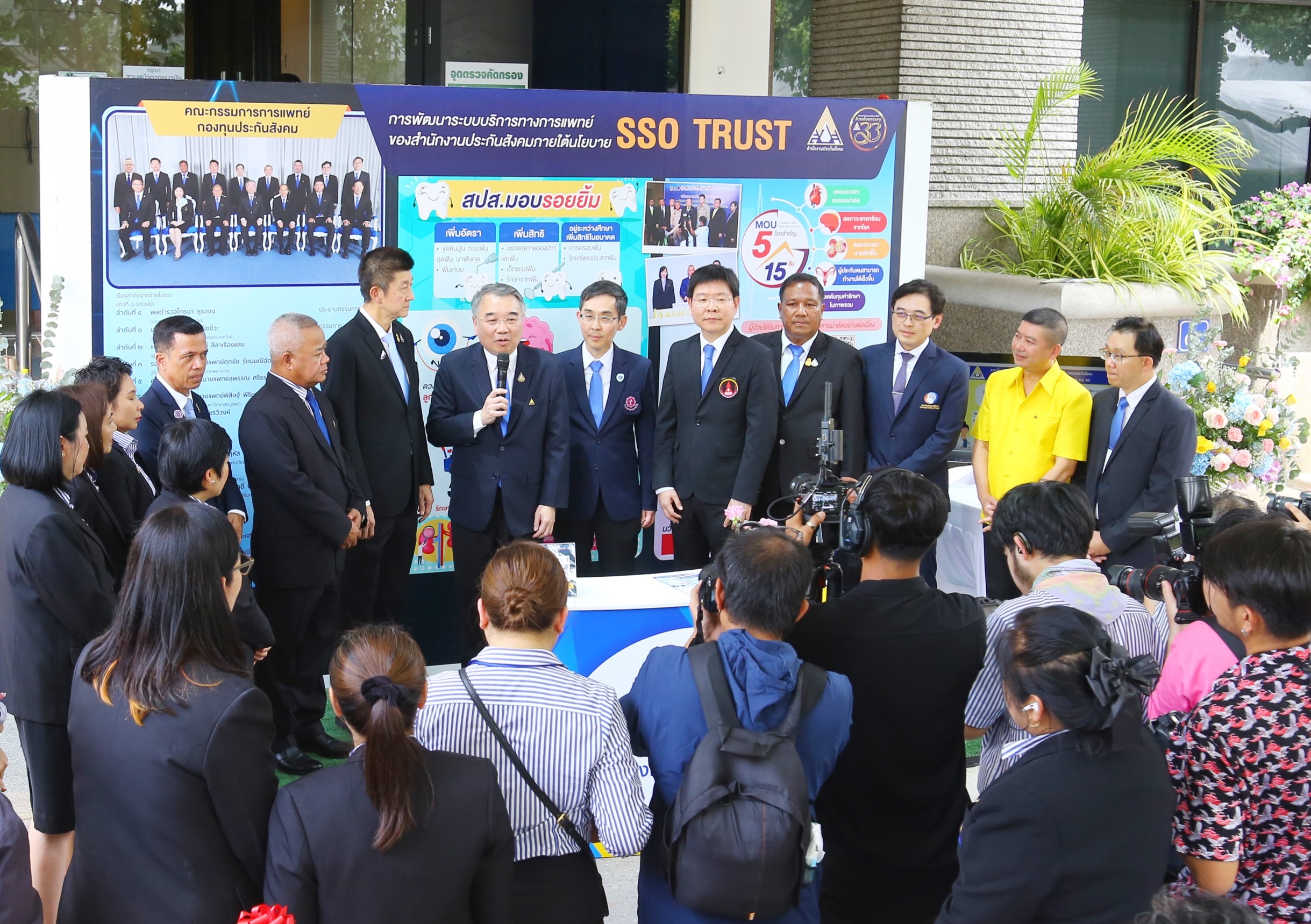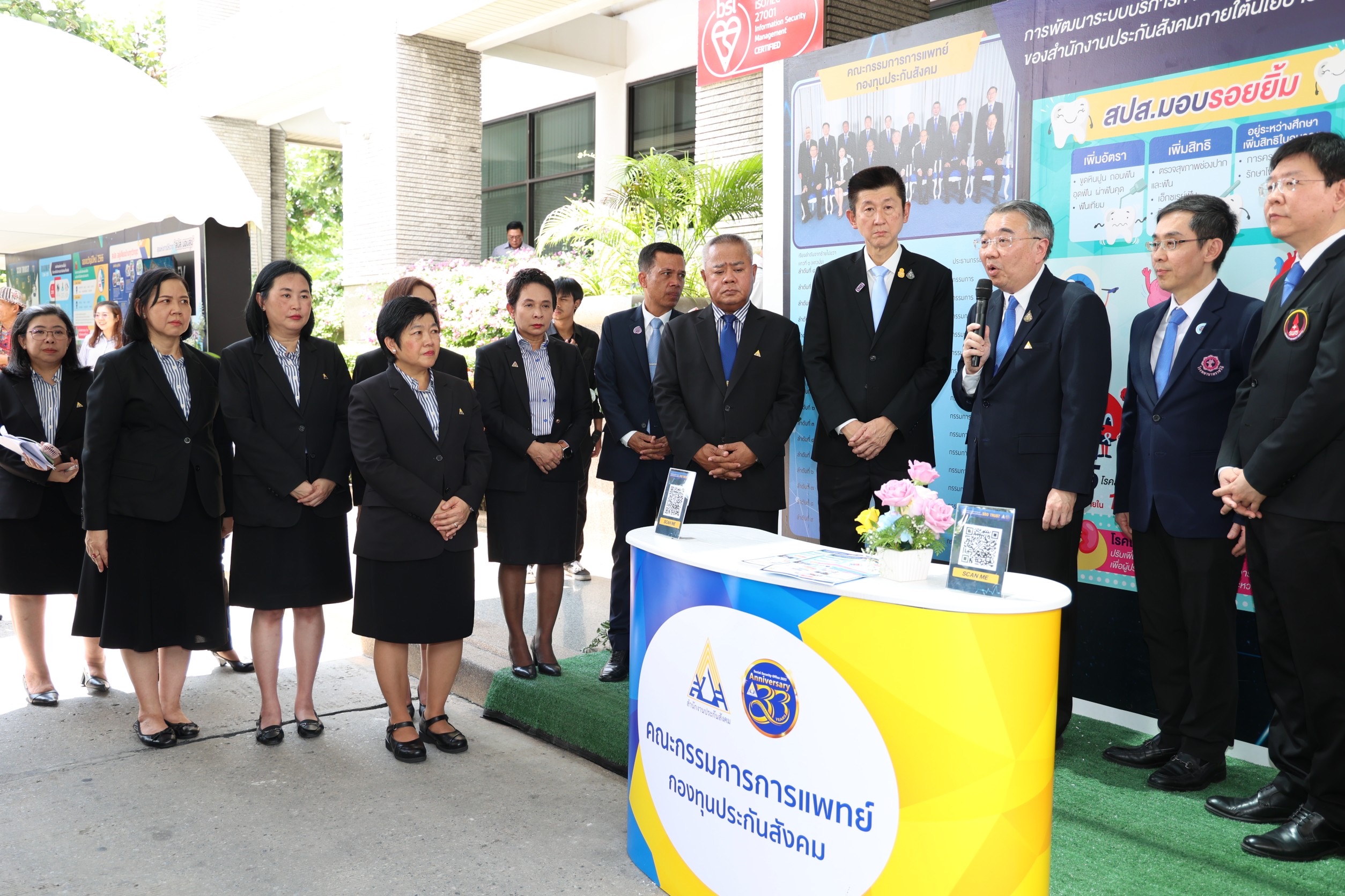 The Social Security Office’s Secretary-General, Mr. Boonsong Thapchaiyut, said that the Social Security Office was established on September 3, 1990, to create life security for employees and insured persons. Until today, it has been 33 years. Every year, the Social Security Office organizes an event on the Social Security Office’s anniversary. The objective is to commemorate the cooperation of all sectors in pushing for establishing social security in Thailand today. It also creates love, unity, and bonding between the Social Security Office’s executives, officials, and network partners from all sectors that have jointly driven social security work throughout the past year. It also aims to publicize the Social Security Office’s work to the public and to express gratitude to people, agencies, and organizations who have always supported the operations of the Social Security Office.