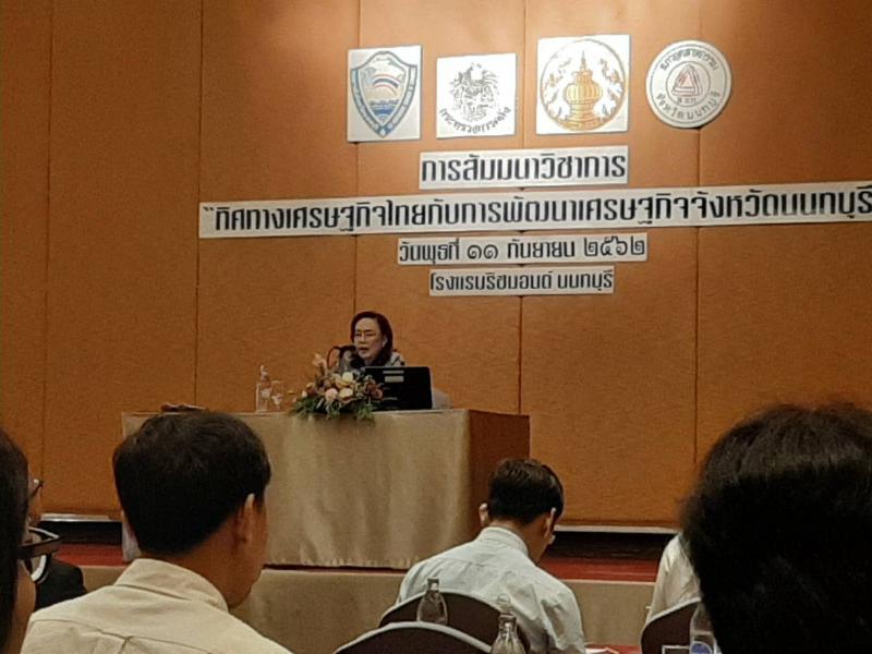 วันพุธที่ 11 กันยายน 2562 เวลา 09.00 น. ณ ห้อง Richmond Ballroom 2 ชั้น 4 โรงแรมริชมอนด์ สไตลิช คอนเวนชั่น จังหวัดนนทบุรี : นางประภาพร อัมรินทร์นุเคราะห์ นักวิชาการแรงงานชำนาญการ ได้รับมอบหมายจากแรงงานจังหวัดนนทบุรี เข้าร่วมสัมมนาวิชาการ “ทิศทางเศรษฐกิจไทยกับการพัฒนาเศรษฐกิจจังหวัดนนทบุรี” โดยมีนางสุภัทร โรจน์บวรวิทยา เป็นประธานในพิธีเปิดงานสัมมนา ทั้งนี้มีการบรรยายในหัวข้อเศรษฐกิจไทยกับความท้าทายในอนาคต รวมถึงอนาคตเศรษฐกิจไทยในยุคนวัตกรรม และมีการเสวนาแชร์ประสบการณ์จากนักธุรกิจที่ประสบความสำเร็จในกิจกรรมครั้งนี้