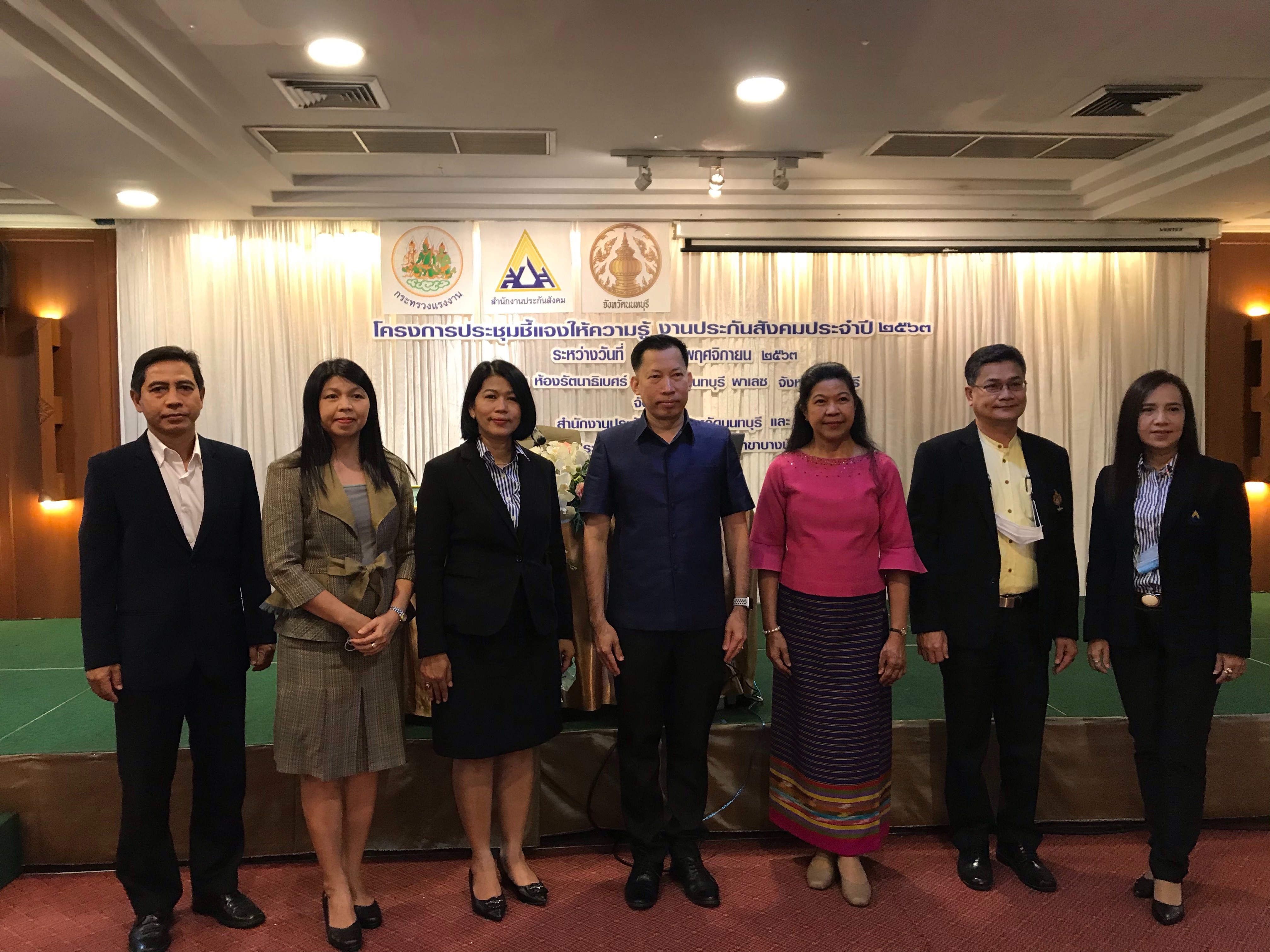 วันที่ 3 พฤศจิกายน 2563 เวลา 09.00 น. ณ ห้องประชุมรัตนาธิเบศร์ โรงแรมนนทบุรี พาเลซ จังหวัดนนทบุรี: ท่านแรงงานจังหวัดนนทบุรี นายวิชิตร สุวรรณมาก ร่วมเป็นเกียรติในพิธีเปิด โครงการประชุมชี้แจงให้ความรู้ประกันสังคม ประจำปี 2563 เพื่อสร้างความรู้ความเข้าใจหลักการของ ประกันสังคมและสิทธิประโยชน์ หลักเกณฑ์และเงื่อนไขแห่งการเกิดสิทธิประโยชน์ทดแทนกรณีต่างๆ