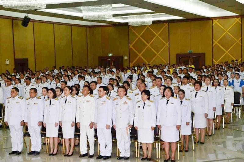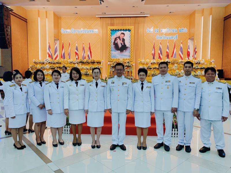 วันที่ 14 พฤศจิกายน 2562 เวลา 07.00 น. ณ ห้องประชุมใหญ่ ชั้น 5 เทศบาลนครนนทบุรี (อาคารใหม่) อำเภอเมืองนนทบุรี จังหวัดนนทบุรี : นางกัญจนาภรณ์ ไซกัล แรงงานจังหวัดนนทบุรี พร้อมหัวหน้าส่วนราชการในสังกัดกระทรวงแรงงานจังหวัดนนทบุรี และเจ้าหน้าที่สำนักงานแรงงานจังหวัดนนทบุรี ร่วมพิธีถวายสักการะวางพานพุ่มดอกไม้สด และกล่าวน้อมรำลึกในพระมหากรุณาธิคุณเบื้องหน้าพระบรมฉายาลักษณ์ เพื่อถวายแด่พระบาทสมเด็จพระบรมชนกาธิเบศร มหาภูมิพลอดุลยเดชมหาราช เนื่องในโอกาสงานวันพระบิดาแห่งฝนหลวง ประจำปี 2562 โดยมีนายชลธี ยังตรง รองผู้ว่าราชการจังหวัดนนทบุรี เป็นประธานในพิธี และมีหัวหน้าสำนักงานจังหวัดนนทบุรี หัวหน้าส่วนราชการ หัวหน้าหน่วยงานรัฐวิสาหกิจ ข้าราชการฝ่ายต่างๆ ลูกจ้างส่วนราชการ ภาคเอกชน เข้าร่วมในพิธีด้วย