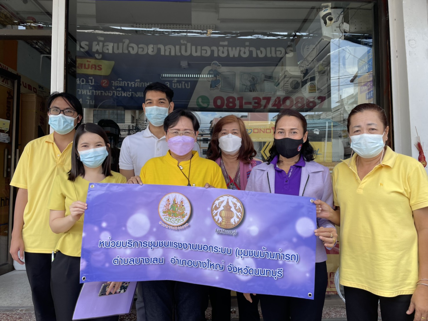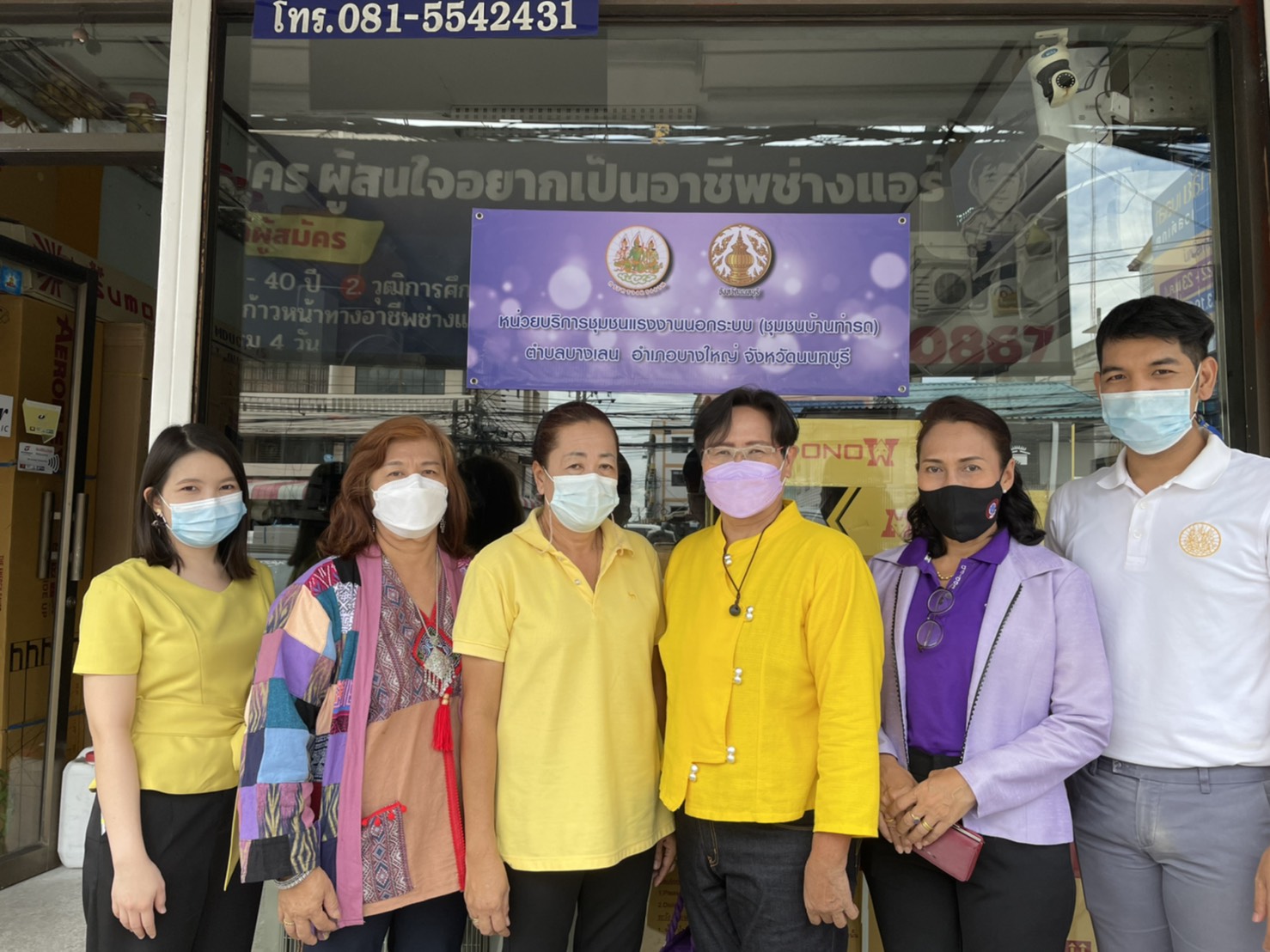วันที่ 7 มิถุนายน 2564 นายวิชิตร สุวรรณมาก แรงงานจังหวัดนนทบุรีมอบหมายให้ นางสาวโสภิตา อินทรีย์วงศ์ นักวิชาการแรงงานชำนาญการ นายอัฎฐพล บุญสร้าง นักวิชาการแรงงานปฏิบัติการ และนางสาวอธิชา ทองเหลือ นักวิชาการแรงงานปฏิบัติการ ร่วมพิธีเปิด “หน่วยบริการชุมชนแรงงานนอกระบบ” (ชุมชนบ้านท่ารถ) ณ ที่ทำการผู้ใหญ่บ้าน หมู่ที่ 5 ตำบลบางเลน อำเภอบางใหญ่ จังหวัดนนทบุรี พร้อมด้วยอาสาสมัครแรงงานประจำตำบลบางเลน