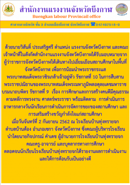 สำนักงานแรงงานจังหวัดบึงกาฬ ร่วมเยี่ยมเยือนสถานศึกษาในพื้นที่จังหวัดบึงกาฬ