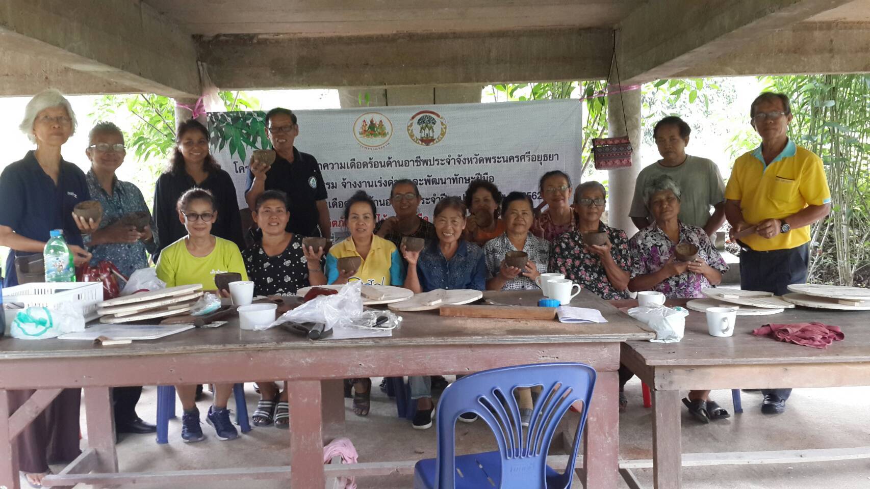 วันพฤหัสบดีที่ 4 มิถุนายน 2562 เวลา 13.00 น. นายประพนธ์ ศิลปรัศมี แรงงานจังหวัดพระนครศรีอยุธยา พร้อมเจ้าหน้าที่ ลงพื้นที่เยี่ยมเยียนกลุ่มอาชีพตามโครงการแก้ไขปัญหาความเดือดร้อนด้านอาชีพ ประจำปีงบประมาณ พ.ศ.2562 กิจกรรมจ้างงานเร่งด่วนและพัฒนาทักษะฝีมือเพื่อบรรเทาความเดือดร้อนด้านอาชีพ กลุ่มอาชีพช่างอุตสาหกรรมศิลป์ พัฒนาทักษะฝีมือการทำผลิตภัณฑ์งานไม้ ตู้เก็บมีด ตะเกียบ ช้อน ฝาโอ่ง โดยจัดกิจกรรมระหว่าง วันที่ 4 – 7, 10 – 12 มิถุนายน 2562 ณ อาคารที่ทำการกองทุนหมู่บ้าน หมู่ที่ 2 ตำบลบางกระสั้น อำเภอบางปะอิน จังหวัดพระนครศรีอยุธยา