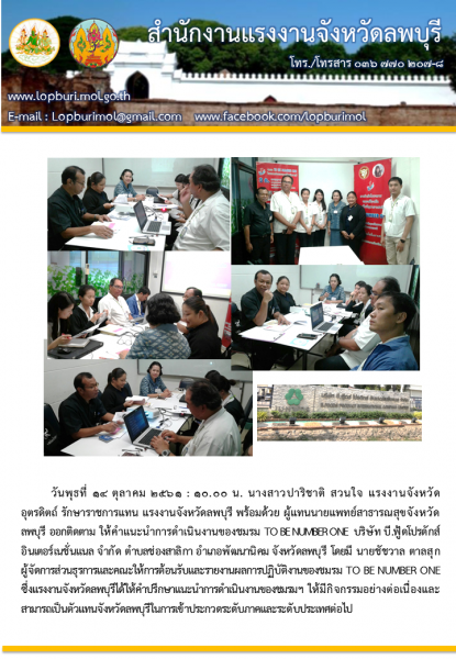 สำนักงานแรงงานจังหวัดลพบุรี ออกติดตาม ให้คำแนะนำการดำเนินงานของชม TO BE NUMBER ONE บริษัท บี.ฟู้ดโปรดักส์ อินเตอร์เนชั่นแนล จำกัด