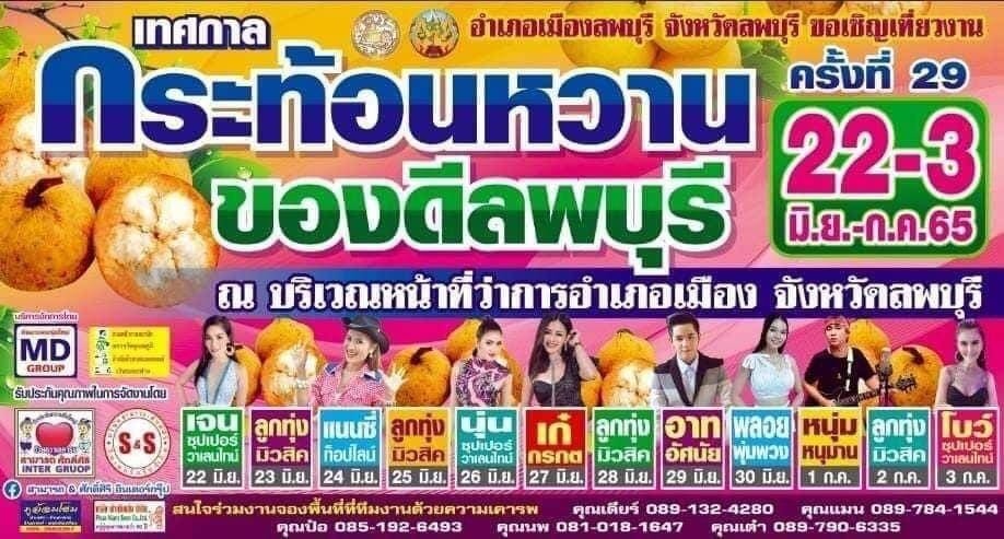 วันพุธที่ 22 มิถุนายน 2565 นายนิวัฒน์ รุ่งสาคร ผู้ว่าราชการจังหวัดลพบุรี เป็นประธานเปิดงานเทศกาลกระท้อนหวานและของดีเมืองลพบุรี ครั้งที่ 29 ประจำปี 2565 ซึ่งกำหนดจัดขึ้นระหว่างวันที่ 22 มิถุนายน ถึง วันที่ 3 กรกฎาคม 2565 ทั้งนี้เพื่อเป็นการเผยแพร่ผลผลิตกระท้อน ของอำเภอเมืองลพบุรี ให้อยู่ในความนิยมของตลาด ส่งเสริมให้เกษตรกรได้ตระหนักถึงความสำคัญของการปลูกไม้ผล ซึ่งสามารถที่จะยึดเป็นอาชีพหลักและอาชีพเสริมของเกษตรกรได้ นอกจากนี้อำเภอได้นำผลผลิต OTOP ในพื้นที่มาจำหน่ายให้แก่ประชาชนอันเป็นรายได้อีกทางหนึ่งด้วยอีกทั้งเป็นการส่งเสริมการท่องเที่ยวของจังหวัดลพบุรี โดย นางภัทรานิษฐ์ เขียวรอด แรงงานจังหวัดลพบุรี ร่วมพิธีเปิดงานฯ ณ ที่ว่าการอำเภอเมืองลพบุรี ตำบลทะเลชุบศร อำเภอเมืองลพบุรี จังหวัดลพบุรี