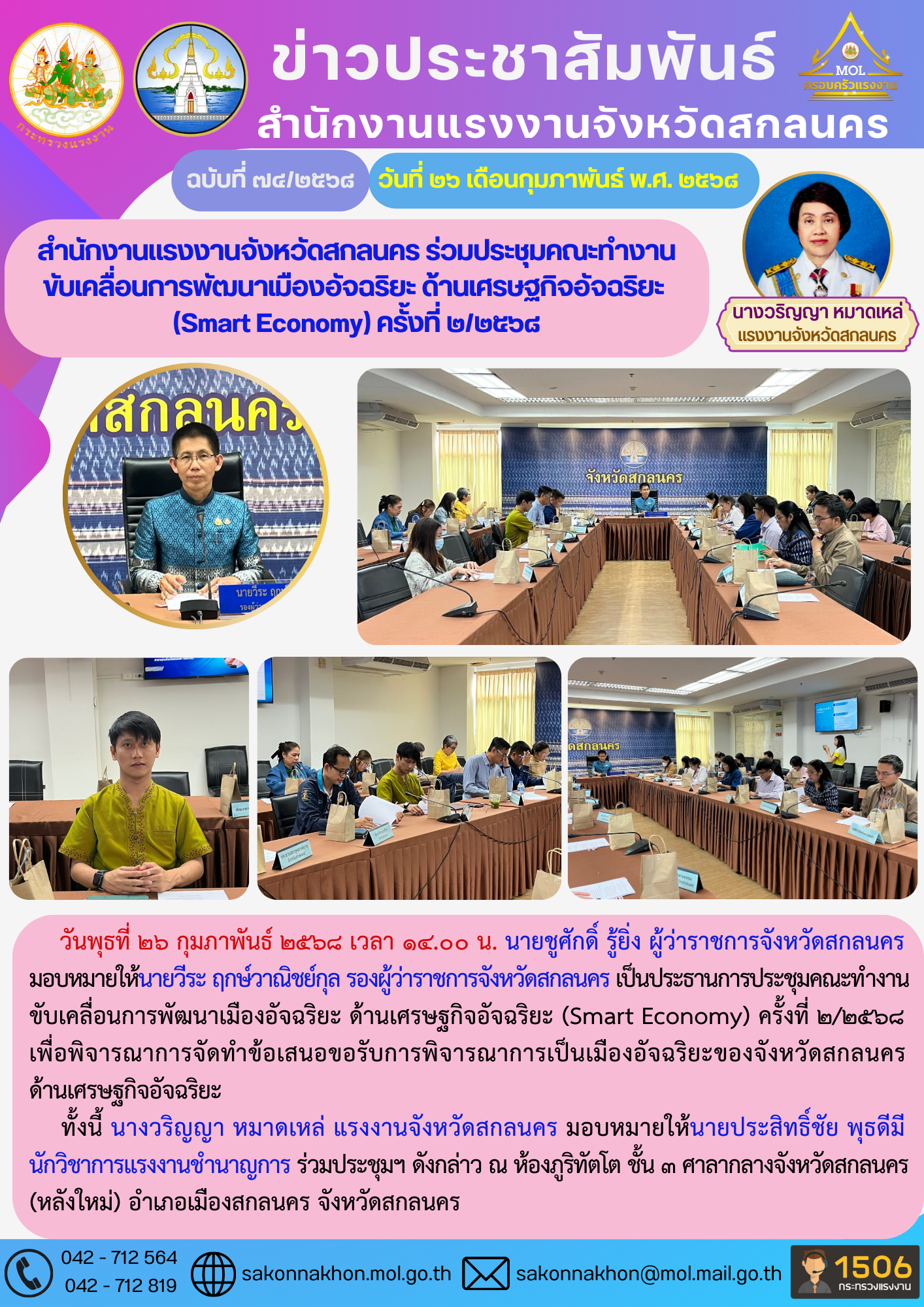 สำนักงานแรงงานจังหวัดสกลนคร ร่วมประชุมคณะทำงาน ขับเคลื่อนการพัฒนาเมืองอัจฉริยะ ด้านเศรษฐกิจอัจฉริยะ (Smart Economy) ครั้งที่ 2/2568