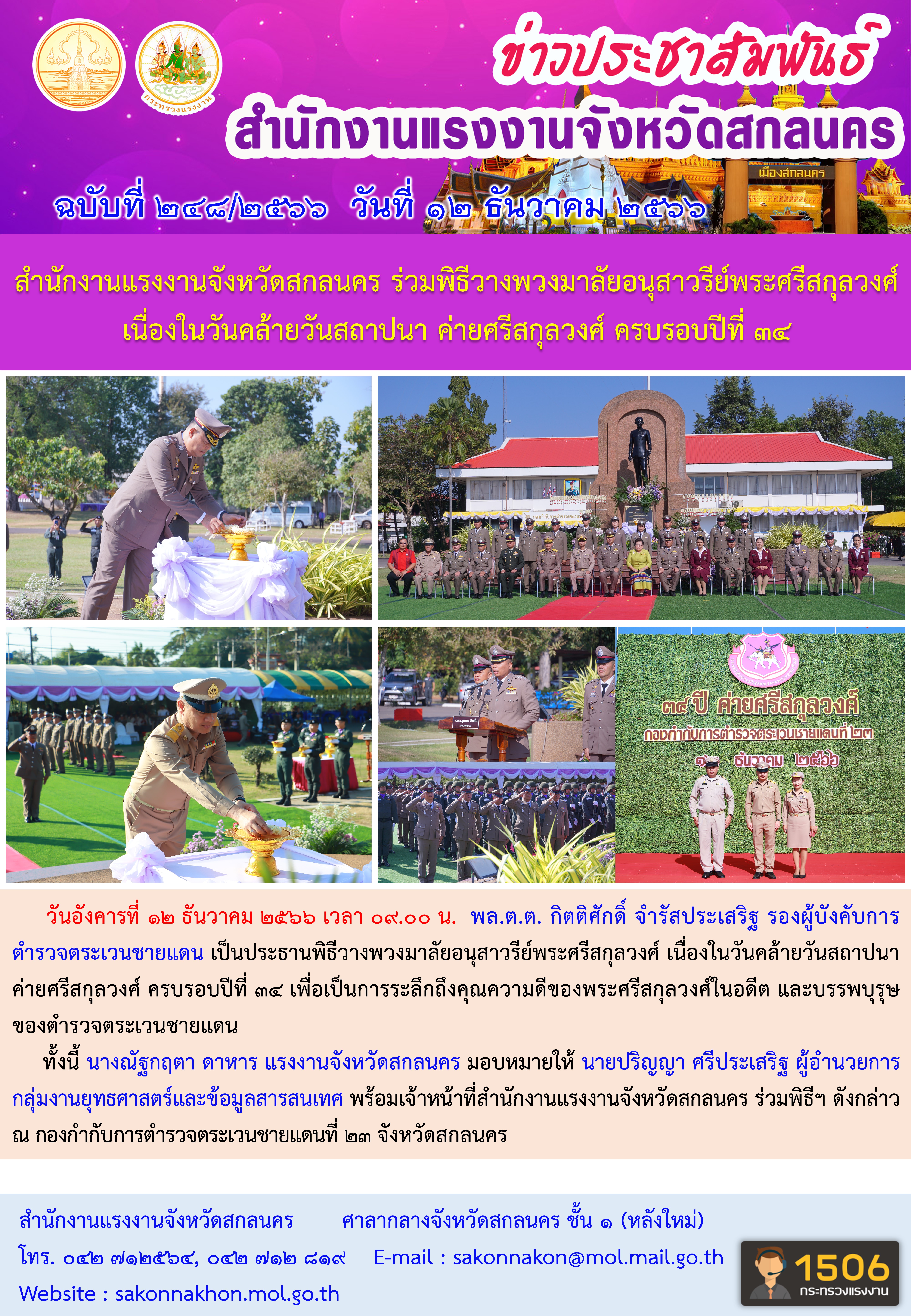 สรจ.สกลนคร ร่วมพิธีวางพวงมาลัยอนุสาวรีย์พระศรีสกุลวงศ์ เนื่องในวันคล้ายวันสถาปนา ค่ายศรีสกุลวงศ์ ครบรอบปีที่ 34