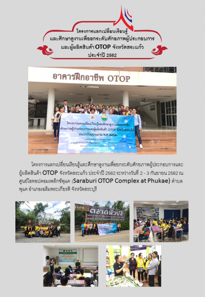 สำนักงานแรงงานจังหวัดสระแก้ว โครงการแลกเปลี่ยนเรียนรู้และศึกษาดูงานเพื่อยกระดับศักยภาพผู้ประกอบการและผู้ผลิตสินค้า OTOP จังหวัดสระแก้ว ประจำปี 2562 ณ ศูนย์โอทอปคอมเพล็กซ์พุแค (Saraburi OTOP Complex at Phukae) ตำบลพุแค อำเภอเฉลิมพระเกียรติ จั