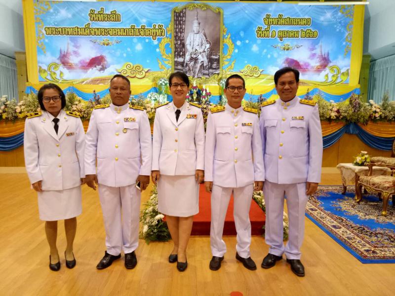 วันจันทร์ที่ 1 ตุลาคม 2561 เวลา 07.30 น. ณ หอประชุม ๑ มหาวิทยาลัยราชภัฏสกลนคร หัวหน้าหน่วยงานในสังกัดกระทรวงแรงงาน จังหวัดสกลนคร พร้อมบุคลากร ร่วมพิธีวางพวงมาลาในภาพรวมกระทรวงแรงงานจังหวัดสกลนคร ถวายราชสักการะเนื่องใน "วันที่ระลึกพระบาทสมเด็จพระจอมเกล้าเจ้าอยู่หัว” โดยมีนายวิทยา จันทร์ฉลอง ผู้ว่าราชการจังหวัดสกลนครเป็นประธานในพิธีฯ