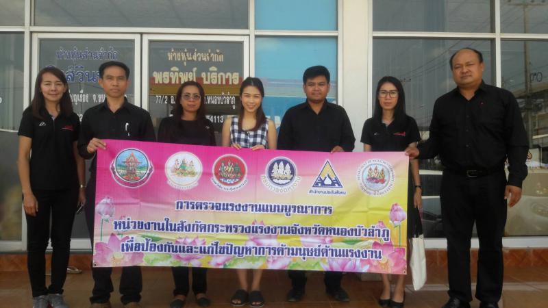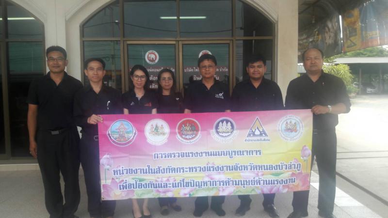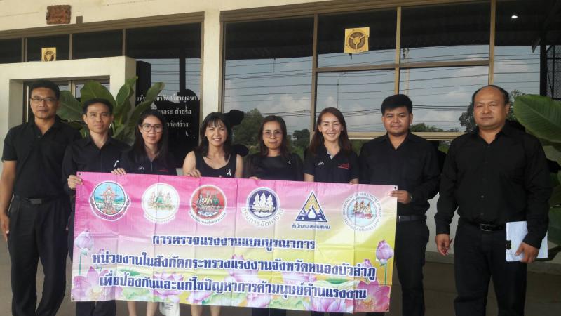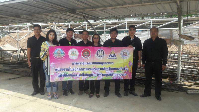 ในวันที่ 23 พฤษภาคม 2560 สำนักงานแรงงานจังหวัดหนองบัวลำภู โดย นางสาวเมตตา อุดมคำ นักวิชาการแรงงานชำนาญการ และนายสมบัติ สมัครสมาน นักวิชาการแรงงานชำนาญการ พร้อมหน่วยงานในสังกัดกระทรวงแรงงานจังหวัดฯ บูรณาการตรวจเยี่ยมสถานประกอบการประเภทกิจการก่อสร้าง เพื่อดำเนินการป้องกันและแก้ไขปัญหาการค้ามนุษย์ด้านแรงงานในสถานประกอบการ จำนวน 6 แห่งคือ