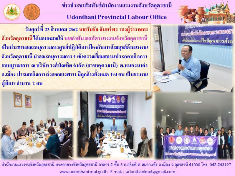 สำนักงานแรงงานจังหวัดอุดรธานี เข้าร่วมการตรวจเยี่ยมสถานประกอบกิจการแบบบูรณาการ ณ บริษัท วงศ์บัณฑิต จำกัด สาขาอุดรธานี อ.เมือง จ.อุดรธานี