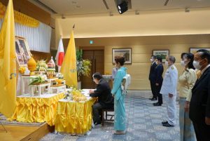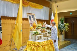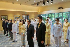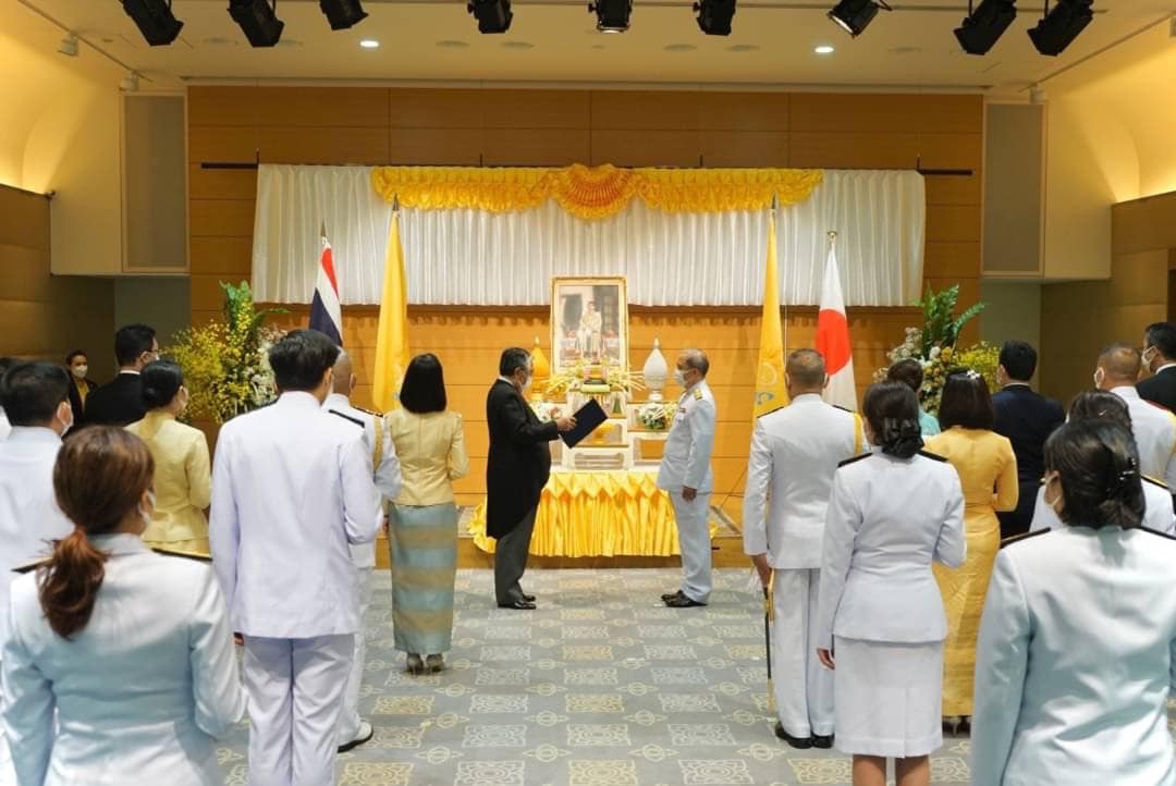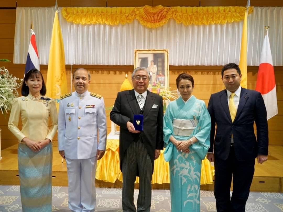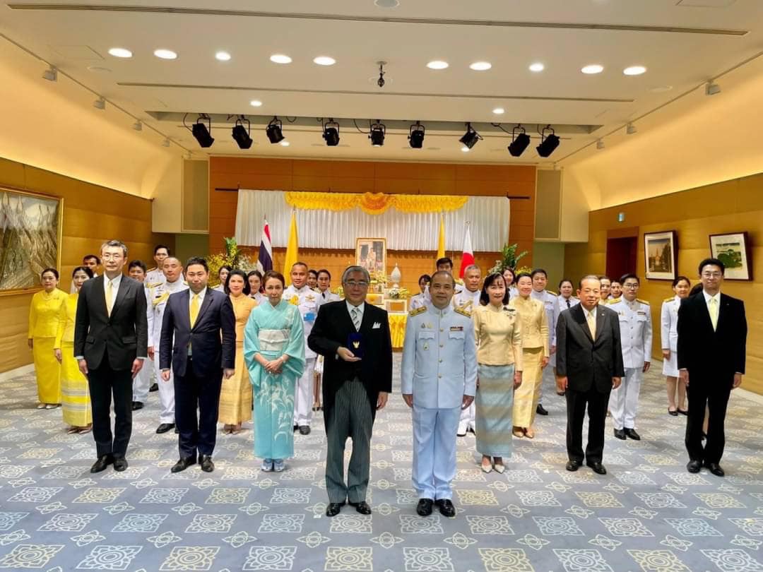 เมื่อวันที่ 27 กรกฎาคม 2565 เวลา 14.00 – 15.00 น. (เวลาท้องถิ่นประเทศญี่ปุ่น ซึ่งเร็วกว่าประเทศไทย 2 ชั่วโมง) นางสาวสดุดี กิตติสุวรรณ อัครราชทูตที่ปรึกษา (ฝ่ายแรงงาน) สำนักงานแรงงานในประเทศญี่ปุ่น พร้อมด้วยนางสาวเกศสุดา มงคลชาติ ที่ปรึกษา (ฝ่ายแรงงาน) เข้าร่วมพิธีรับพระราชทานเครื่องราชอิสริยาภรณ์ นาย MIWA Yoshihiro กงสุลใหญ่กิตติมศักดิ์ ณ เมืองนาโกยา เนื่องในโอกาสวันเฉลิมพระชนมพรรษาพระบาทสมเด็จพระเจ้าอยู่หัว 28 กรกฎาคม 2565 โดยมีนายสิงห์ทอง ลาภพิเศษพันธุ์ เอกอัครราชทูต ณ กรุงโตเกียว เป็นประธาน และมีภริยานาย MIWA Yoshihiro กงสุลใหญ่กิตติมศักดิ์ ณ เมืองนาโกยา เจ้าหน้าที่สถานกงสุลใหญ่กิตติมศักดิ์ ณ เมืองนาโกยา หัวหน้าและข้าราชการสำนักงานทีมประเทศไทยประจำกรุงโตเกียว พร้อมคู่สมรส เข้าร่วมในพิธีดังกล่าว ณ หอประชุมสถานเอกอัครราชทูต ณ กรุงโตเกียว