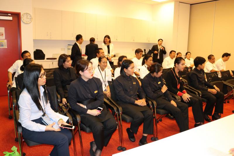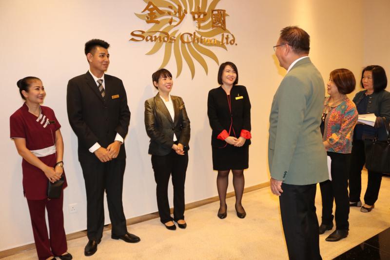 2. วันที่ 7 กันยายน 2561 ตรวจเยี่ยมแรงงานไทยที่ โรงแรม The Venetian, Wynn Palace และ New Galaxy ประกอบด้วย หัวหน้าพ่อครัว พ่อครัวแม่ครัว พนักงานนวดสปา และพนักงานบริการด้านต่างๆ ในโรงแรมและคาสิโน โดยเฉพาะอย่างยิ่ง แรงงานไทยที่ Wynn Palace ส่วนหนึ่ง เป็นบัณฑิตจบใหม่ ซึ่งได้รับการจ้างงาน โดยกรมการจัดหางานจัดส่ง (จัดส่งโดยรัฐ) เดินทางเข้ามาทำงานระหว่างเดือนสิงหาคม – กันยายน ศกนี้ ขณะนี้อยู่ระหว่างการฝึกอบรมก่อนเข้าทำงาน นอกจากนั้น ได้ตรวจเยี่ยมสถานที่พักอาศัย ซึ่ง Wynn Palace จัดให้ลูกจ้างต่างชาติในสถานประกอบการได้เข้าพัก
