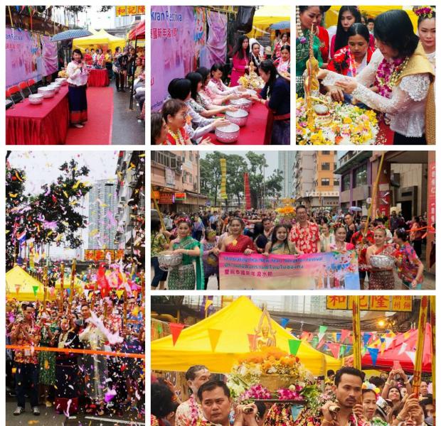 - 2.3 สมาคมรวมไทยในฮ่องกงและองค์กรเครือข่าย จัดงานเวลา 10.00 น. มีกิจกรรมทำบุญตักบาตร สรงน้ำพระ ประกวดนางสงกรานต์ รำวงย้อนยุค รดน้ำขอพรผู้ใหญ่ การแห่ขบวนพระพุทธรูป ขบวนสงกรานต์รอบชุมชนชาวไทยเก๋าหล่งเส่ง เขตเกาลูน การละเล่นต่างๆ ท่ามกลางสายฝน โดยกงสุล (ฝ่ายแรงงาน) นางรัชนีกร ปิ่นแก้ว ได้รับมอบหมายจากกงสุลใหญ่ฯ ให้เป็นประธานในพิธีเปิด มีผู้ร่วมงาน ทั้งชาวไทย ชาวฮ่องกงและต่างชาติ ประมาณ 800 คน