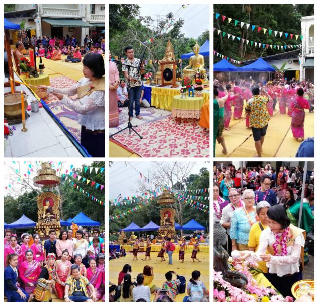 - 2.2 วัดเมฆธรรมวนาราม (วัดไทหว่อ) เขตนิวเทอริทอรี่ จัดงาน ทั้งวัน โดยกงสุล (ฝ่ายแรงงาน) นางรัชนีกร ปิ่นแก้ว ได้รับมอบหมายจากกงสุลใหญ่ฯ ให้เป็นประธานฝ่ายฆราวาส กิจกรรมในงานประกอบด้วย การทำบุญตักบาตร ถวายสังฆทาน สรงน้ำพระ ก่อเจดีย์ทราย การแสดงศิลปวัฒนธรรมไทย การประกาศแต่งตั้งเจ้าอาวาสวัดเมฆธรรมวนารามรูปใหม่ การถวายผ้าป่า และการละเล่นต่างๆ มีผู้เข้าร่วมงานประมาณ 500 คน