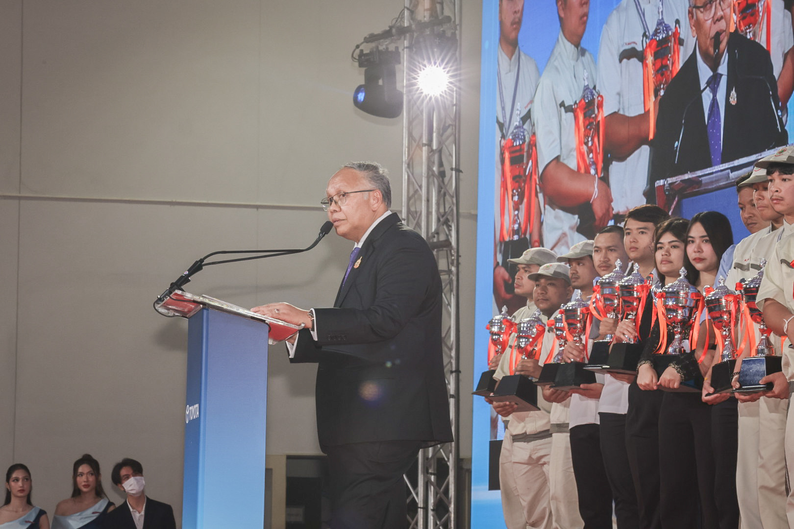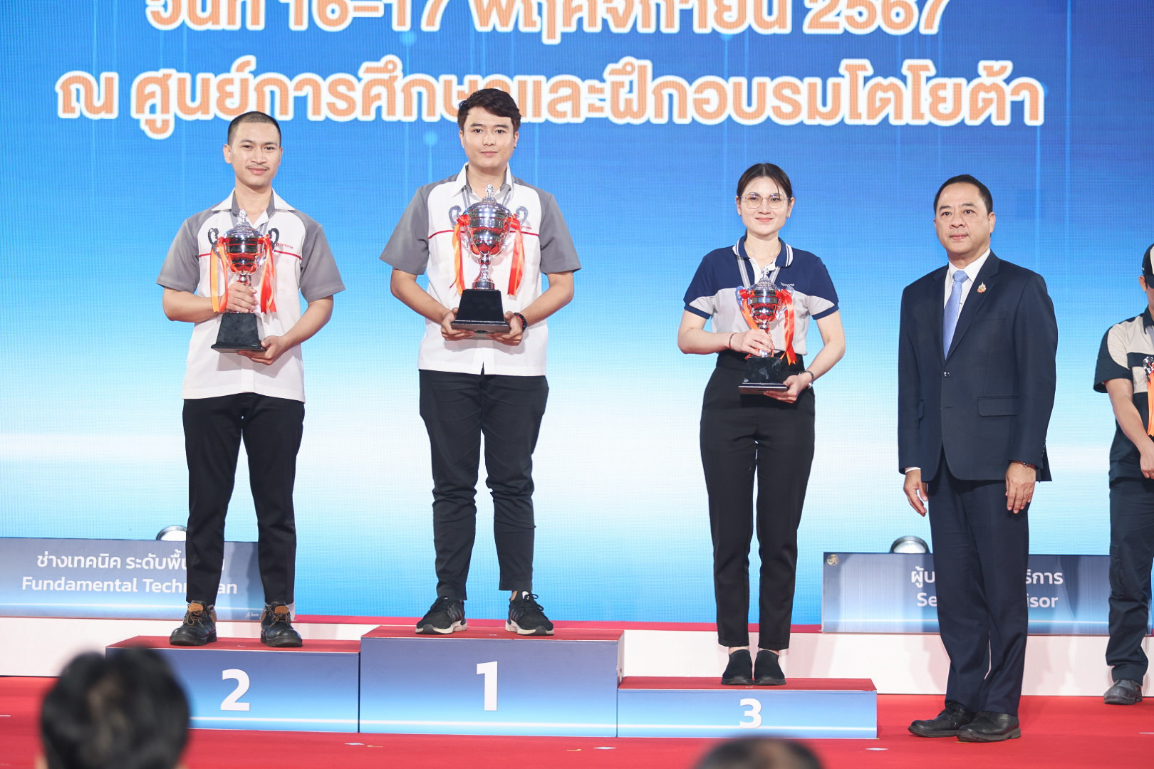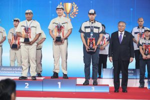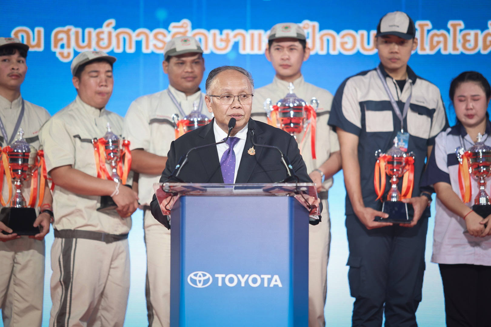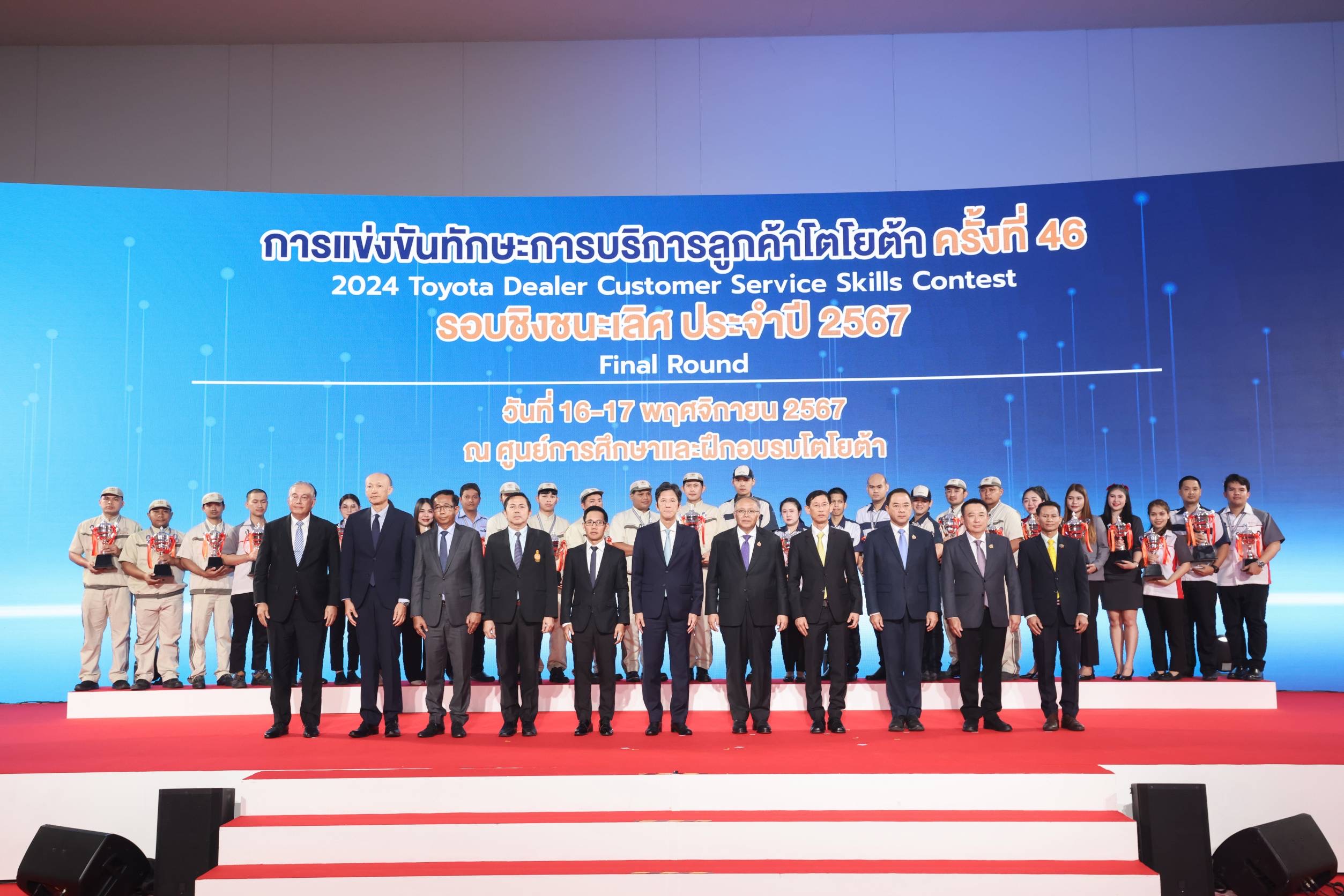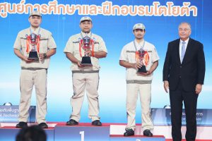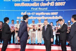 นายสิรภพ ดวงสอดศรี ผู้ช่วยรัฐมนตรีประจำกระทรวงแรงงาน กล่าวว่า วันนี้ (17 พ.ย. 67) นายพิพัฒน์ รัชกิจประการ รัฐมนตรีว่าการกระทรวงแรงงาน มอบหมายให้ผมมาเป็นประธานพิธีการประกาศผลและมอบรางวัลการแข่งขันทักษะการบริการลูกค้าโตโยต้า รอบชิงชนะเลิศ ประจำปี พ.ศ. 2567 ต้องขอแสดงความชื่นชม บริษัท โตโยต้า มอเตอร์ ประเทศไทย จำกัด ในฐานะสถานประกอบการผลิตรถยนต์รายใหญ่ในประเทศไทย ที่เห็นความสำคัญในการพัฒนาทักษะของบุคลากรอย่างต่อเนื่อง นำไปสู่การยกระดับฝีมือแรงงานและได้มาตรฐานเดียวกัน และขอแสดงความยินดี กับผู้ชนะการแข่งขันทุกคนที่ได้ทุ่มเทแรงกายแรงใจ ฝึกฝนทักษะ จนสามารถคว้ารางวัลอันทรงเกียรติในครั้งนี้ ซึ่งผู้เข้าแข่งขันทุกท่านได้แสดงความสามารถอย่างโดดเด่น จึงขอให้นำประสบการณ์ และความรู้ที่ได้รับจากการแข่งขันไปถ่ายทอดและประยุกต์ใช้ในการปฏิบัติงานต่อไป กิจกรรมการแข่งขันนับเป็นกิจกรรมที่ช่วยกระตุ้นและส่งเสริมให้บุคลากรมีการพัฒนาศักยภาพทักษะฝีมือและความรู้ในการทำงานของตน ให้ทัดเทียมมาตรฐานสากล ส่งผลให้คุณภาพการบริการดีขึ้นอย่างต่อเนื่อง ทั้งยังเป็นตัวอย่างที่ดีในการยกระดับศักยภาพแรงงานไทย สอดคล้องกับแผนพัฒนาและยกระดับมาตรฐานฝีมือแรงงานให้เป็นที่ยอมรับในระดับสากล นอกจากนี้ยังเป็นกิจกรรมที่สร้างแรงงานฝีมือในอุตสาหกรรมยานยนต์ ซึ่งเป็นอุตสาหกรรมหลักของประเทศไทย อีกด้วย