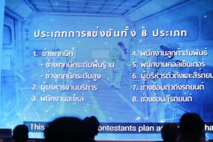 นายโนริอากิ ยามาชิตะ กรรมการผู้จัดการใหญ่บริษัท โตโยต้า มอเตอร์ ประเทศไทย จำกัด กล่าวเพิ่มเติมว่า กิจกรรมดังกล่าว โตโยต้าจัดขึ้นเป็นปีที่ 46 ซึ่งคณะผู้บริหารโตโยต้า เล็งเห็นและให้ความสำคัญในการพัฒนาทักษะฝีมือของบุคลากรโตโยต้าอย่างต่อเนื่อง การแข่งขันในครั้งนี้บริษัทดำเนินการจัดแข่งขัน จำนวน 9 สาขา ประกอบด้วย 1) ช่างเทคนิคระดับสูง (2) ช่างเทคนิคระดับพื้นฐาน (3) ผู้บริหารงานบริการ (4) พนักงานอะไหล่ (5) พนักงานลูกค้าสัมพันธ์ (6) พนักงานคอลเซ็นเตอร์ (7) ช่างซ่อมสีรถยนต์ (8) ช่างซ่อมตัวถังรถยนต์ และ (9) ผู้บริหารงานตัวถังและสี เป็นสาขาที่ผู้ประกอบกิจการด้านรถยนต์ มีความต้องการช่างตำแหน่งนี้เป็นจำนวนมาก และการแข่งขันจะเป็นการกระตุ้นให้พัฒนาศักยภาพของตนเองให้สูงขึ้นและสร้างแรงบัลดาลใจให้แก่แรงงานใหม่