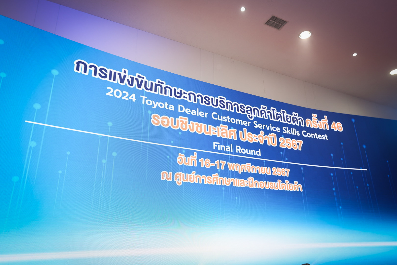 วันที่ 17 พฤศจิกายน 2567 นายพิพัฒน์ รัชกิจประการ รัฐมนตรีว่าการกระทรวงแรงงาน มอบหมายให้ นายสิรภพ ดวงสอดศรี ผู้ช่วยรัฐมนตรีประจำกระทรวงแรงงาน เป็นประธานในพิธีประกาศผลและมอบรางวัลการแข่งขันทักษะการบริการลูกค้าโตโยต้า รอบชิงชนะเลิศ ประจำปี พ.ศ. 2567 โดยมี นายสมาสภ์ ปัทมะสุคนธ์ ผู้ตรวจราชการกระทรวงแรงงาน รักษาราชการแทน รองปลัดกระทรวงแรงงาน นายเดชา พฤกษ์พัฒนรักษ์ รองปลัดกระทรวงแรงงาน รักษาราชการแทน อธิบดีกรมพัฒนาฝีมือแรงงาน ผู้บริหารกระทรวงแรงงาน นายประสิทธิ์ อินทโชติ รองผู้ว่าราชการจังหวัดฉะเชิงเทรา และหัวหน้าส่วนราชการสังกัดกระทรวงแรงงานจังหวัดฉะเชิงเทรา ร่วมเป็นเกียรติ นายโนริอากิ ยามาชิตะ กรรมการผู้จัดการใหญ่บริษัท โตโยต้า มอเตอร์ ประเทศไทย จำกัด และคณะผู้บริหาร ให้การต้อนรับ ณ ศูนย์การศึกษาและฝึกอบรมโตโยต้า ถ.สุวินทวงศ์ อ.เมืองฉะเชิงเทรา จ.ฉะเชิงเทรา
