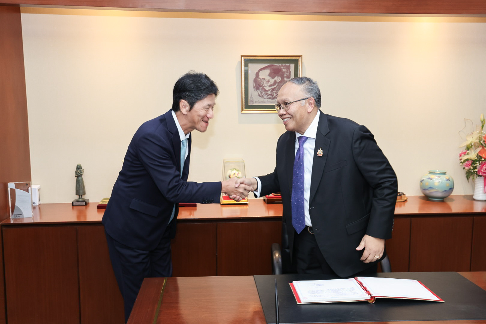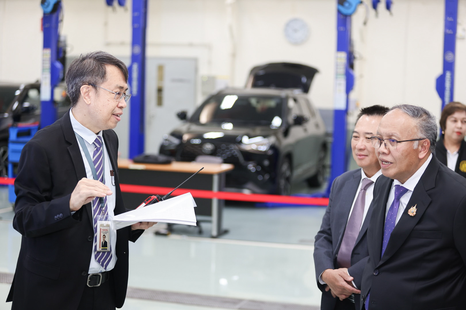 ด้าน นายเดชา พฤกษ์พัฒนรักษ์ รองปลัดกระทรวงแรงงาน รักษาราชการแทนอธิบดีกรมพัฒนาฝีมือแรงงาน กล่าวเพิ่มเติมว่า ที่ผ่านมากรมพัฒนาฝีมือแรงงานได้ร่วมกับบริษัท โตโยต้า มอเตอร์ ประเทศไทย จำกัด ในการพัฒนาบุคลากรด้านยานยนต์ให้มีทักษะทันต่อการเปลี่ยนแปลงของเทคโนโลยีสมัยใหม่ ให้เป็นที่ต้องการของตลาดแรงงานทั้งในและต่างประเทศมาโดยตลอด และในปี พ.ศ. 2568 จะมีแผนการดำเนินการ อาทิ จัดฝึกอบรมช่างซ่อมตัวถังและสีรถยนต์ ระยะเวลา 120 ชั่วโมง เป้าหมาย 1,200 คน นอกจากนี้บริษัทยังร่วมกับสถาบันพัฒนาฝีมือแรงงาน 7 อุบลราชธานี จัดฝึกอบรมและทดสอบมาตรฐานฝีมือแรงงานแห่งชาติ สาขาช่างตัวถังและสีรถยนต์ ระดับ 1 อีกจำนวน 150 คน รวมถึง สนับสนุนผู้เชี่ยวชาญเป็นคณะอนุกรรมการเทคนิคการแข่งขันฝีมือแรงงานแห่งชาติ ครั้งที่ 30 ในเดือนมีนาคม 2568 ที่ผ่านมาได้สนับสนุนวัสดุเครื่องมือและอุปกรณ์เพื่อใช้ในการแข่งขันฝีมือแรงงาน จำนวน 2 สาขา ได้แก่ สาขาเทคโนโลยียานยนต์ และสาขาการซ่อมสีรถยนต์ จึงถือว่าเป็นพันธมิตรที่ดีกับกรมมาอย่างต่อเนื่องและยาวนาน ช่วยให้การพัฒนากำลังแรงงานในสาขาช่างซ่อมตัวถังและสีรถยนต์และสาขาอื่น ๆ ที่เกี่ยวข้อง มีแรงงานที่มีคุณภาพ