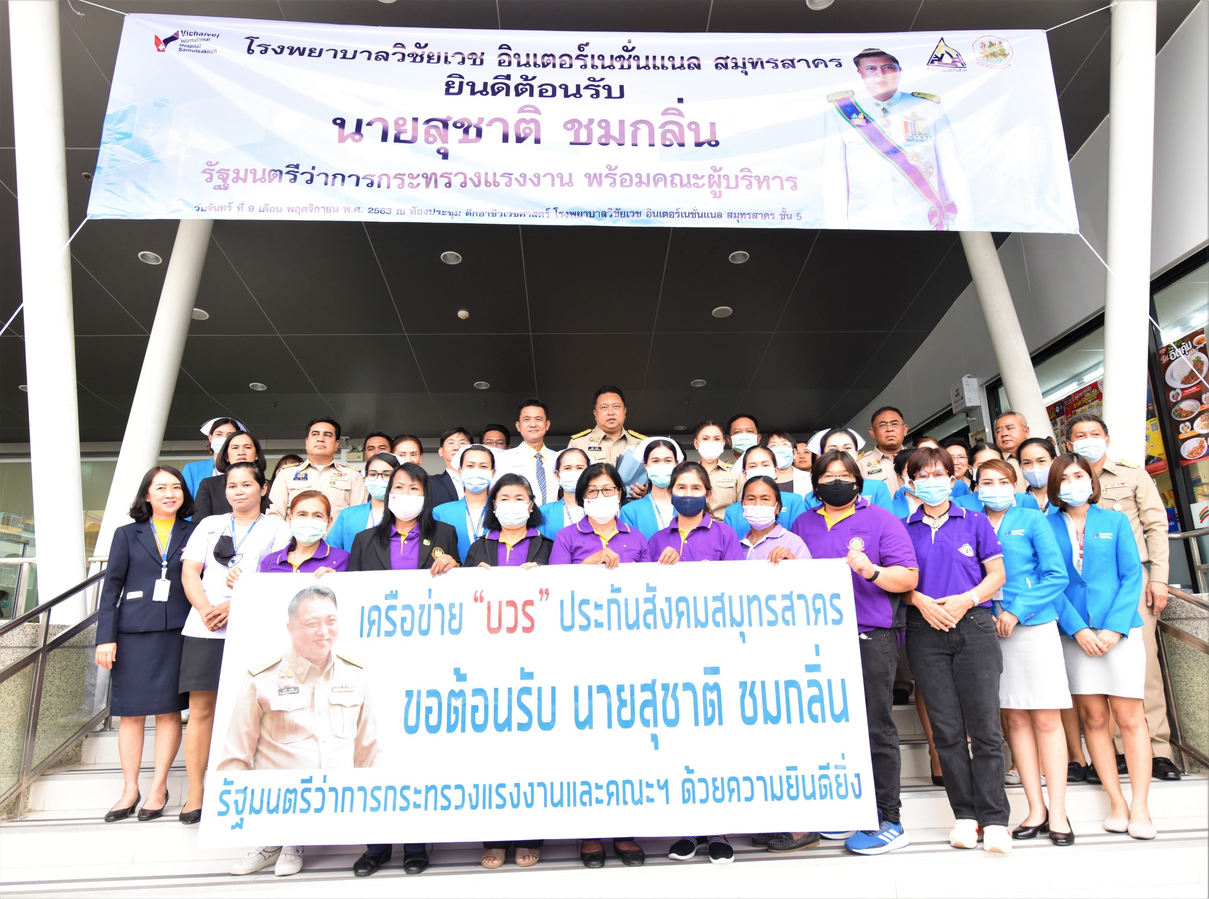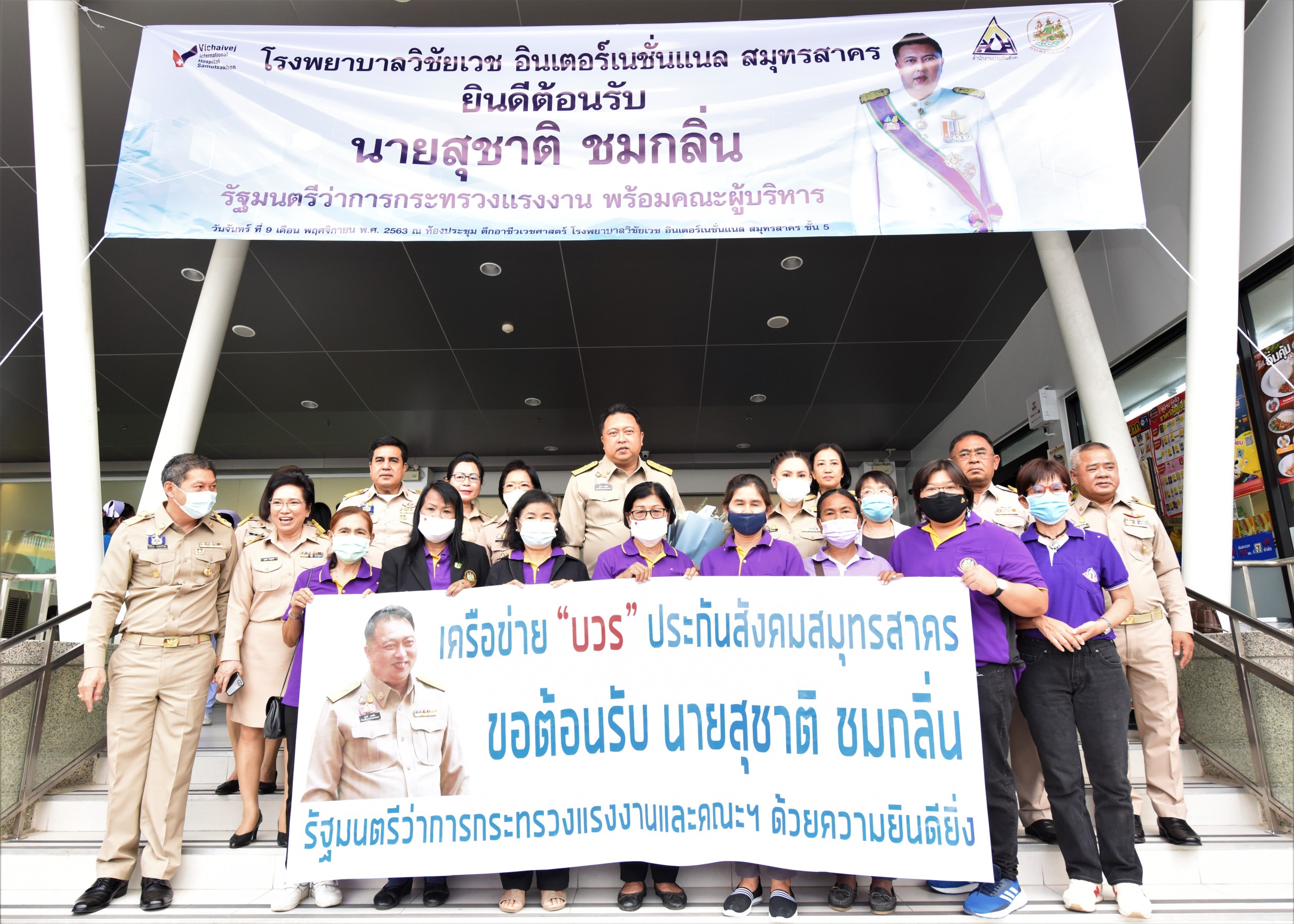 รัฐมนตรีว่าการกระทรวงแรงงาน เปิดประกันสังคมสมายด์คอนเนอร์ ให้เป็นจุดรับรองพิเศษแก่ผู้ประกันตนที่มาเข้ารับบริการยังสถานพยาบาลในเครือข่ายประกันสังคม ณ โรงพยาบาลวิชัยเวช สมุทรสาคร เสริมสร้างความมั่นใจแก่ผู้ประกันตนได้รับบริการที่สะดวก รวดเร็ว และมีประสิทธิภาพมากยิ่งขึ้น
