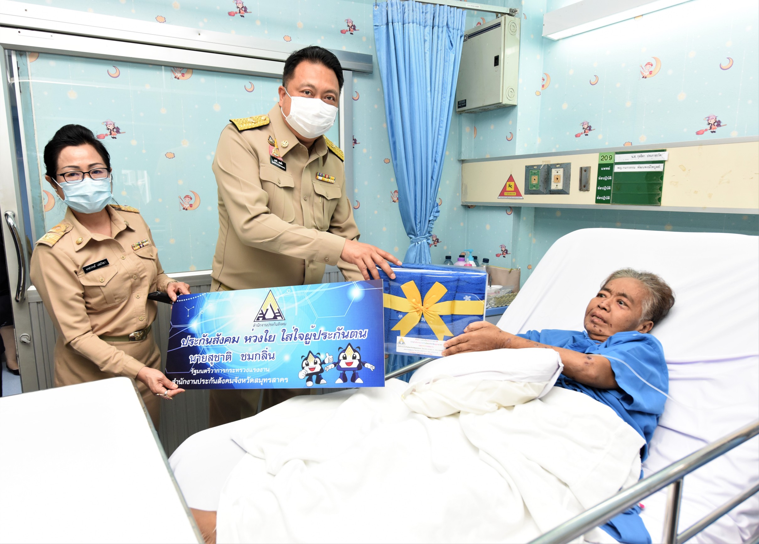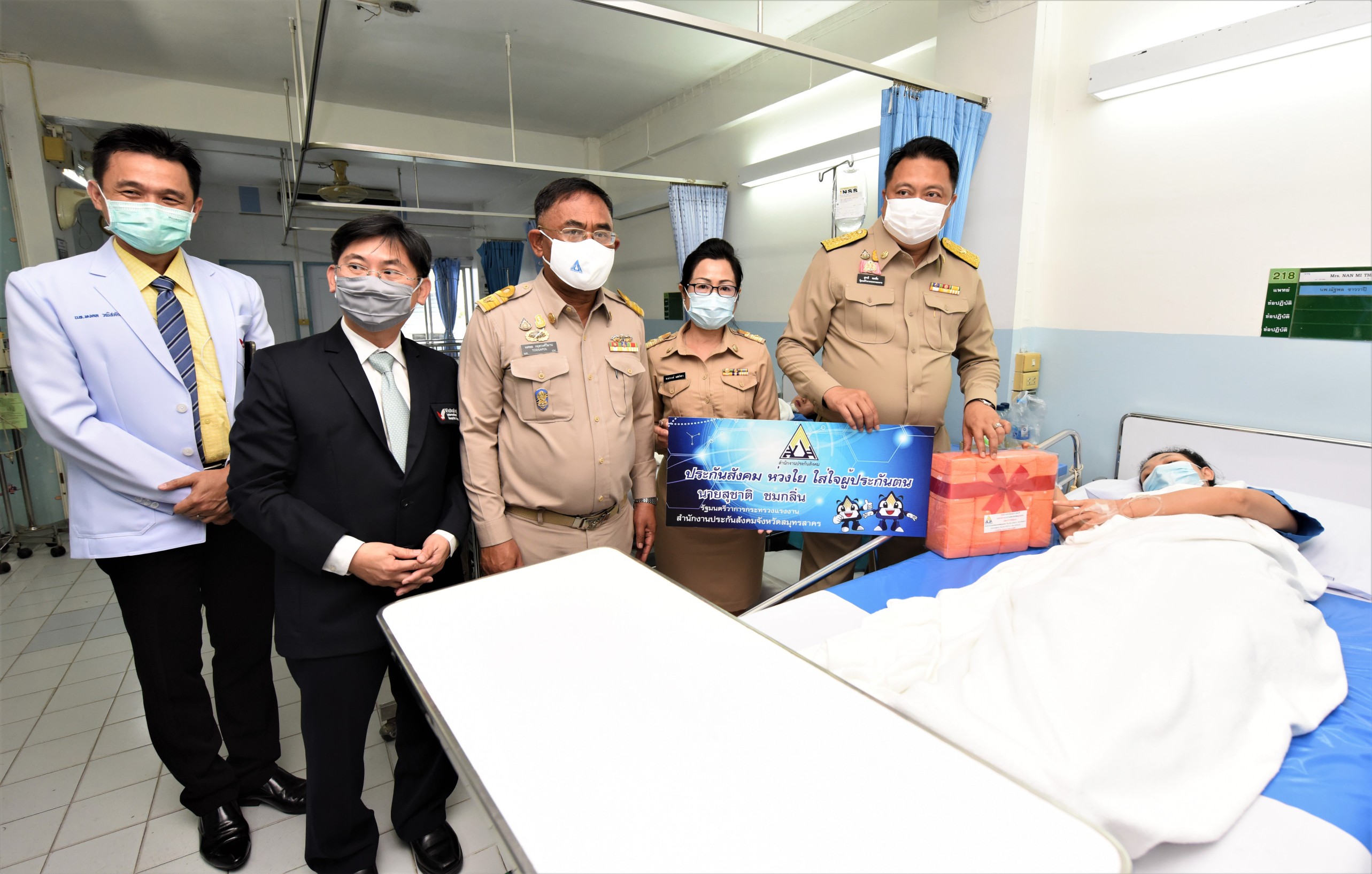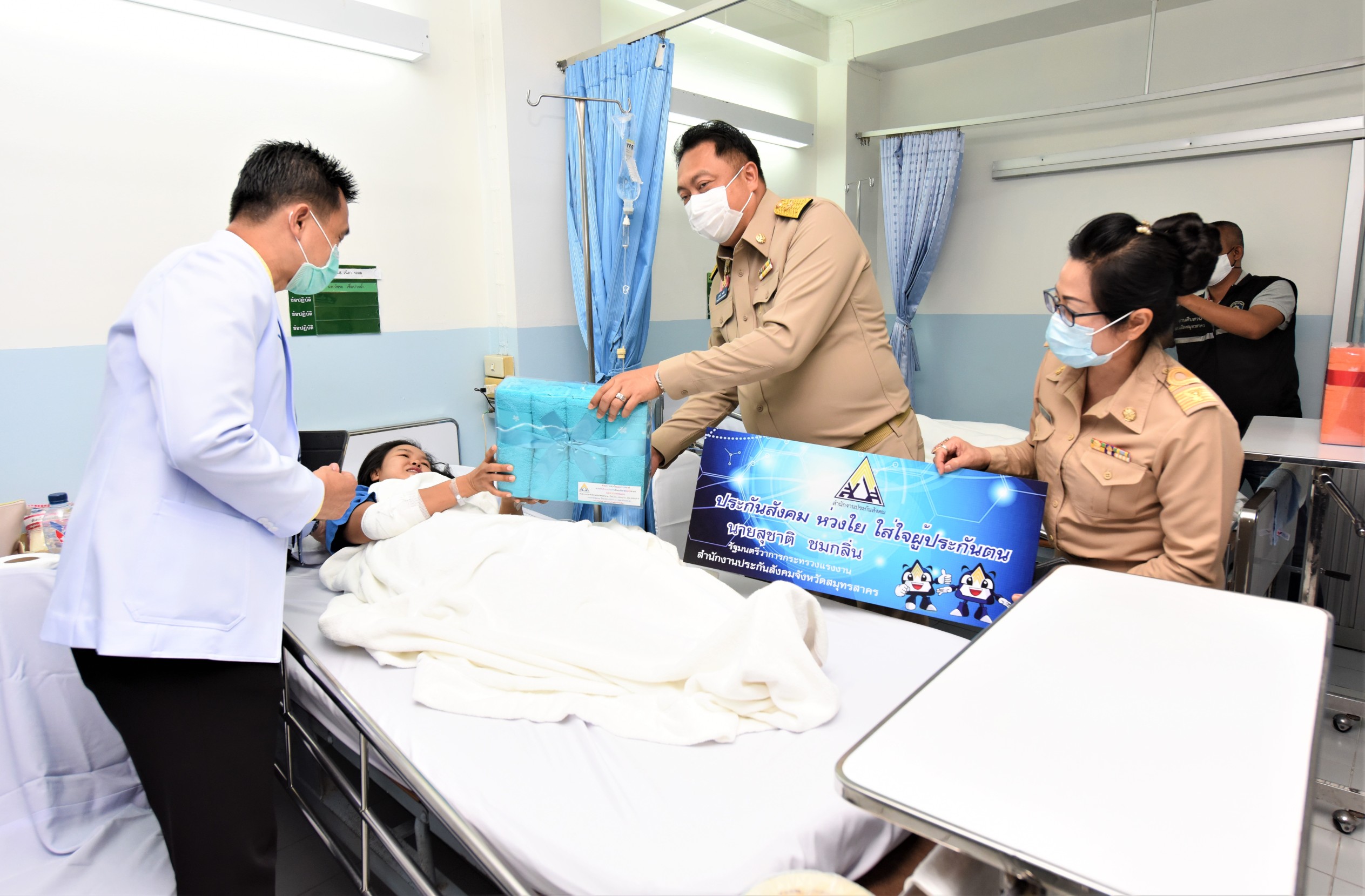 โอกาสเดียวกันนี้ รมว.แรงงาน และคณะ ยังได้เยี่ยมมอบสิ่งของเพื่อเป็นขวัญและกำลังใจแก่ผู้ประกันตน