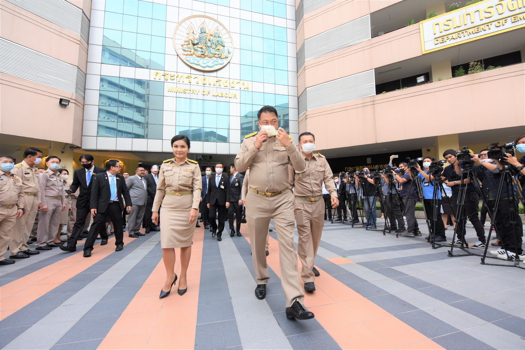 วันที่ ๑๔ สิงหาคม ๒๕๖๓ เวลา ๐๗.๒๙ น. นายสุชาติ ชมกลิ่น รัฐมนตรีว่าการกระทรวงแรงงาน พร้อมด้วย ศาสตราจารย์ ดร.นฤมล ภิญโญสินวัฒน์ รัฐมนตรีช่วยว่าการกระทรวงแรงงาน ถือฤกษ์เดินทางเข้ากระทรวงแรงงานหลังถวายสัตย์ปฏิญาณก่อนเข้ารับหน้าที่เมื่อวันที่ ๑๒ สิงหาคมที่ผ่านมา เพื่อสักการะสิ่งศักดิ์สิทธิ์ประจำกระทรวงแรงงาน ประกอบด้วย พระพุทธสุทธิธรรมบพิตร พระพุทธชินราช ศาลพ่อปู่ชัยมงคล ศาลท้าวมหาพรหมเทวฤทธิ์ และเชิญพระพุทธรูปเข้าในห้องทำงาน ชั้น ๖ อาคารกระทรวงแรงงาน ๑๕ ชั้น จากนั้นลงนามในแฟ้มเอกสารรับตำแหน่งรัฐมนตรีอย่างเป็นทางการวันแรก โดยมี นายสุทธิ สุโกศล ปลัดกระทรวงแรงงาน กล่าวแสดงความยินดีและมอบแจกันดอกไม้ พร้อมด้วยผู้บริหารระดับสูง ข้าราชการ และเจ้าหน้าที่กระทรวงแรงงานร่วมให้การต้อนรับอย่างอบอุ่น โดยได้ถ่ายภาพร่วมกับผู้บริหารระดับสูงกระทรวงแรงงานอีกด้วย