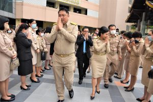 ‘สุชาติ ชมกลิ่น’ พร้อมด้วย ‘นฤมล ภิญโญสินวัฒน์’ ๒ รัฐมนตรีป้ายแดง ถือฤกษ์ดี เวลา ๐๗.๒๙ น.เดินทางเข้าสักการะสิ่งศักดิ์สิทธิ์ประจำกระทรวงแรงงาน ในโอกาสรับตำแหน่งรัฐมนตรีว่าการกระทรวงแรงงาน คนที่ ๑๖ และรัฐมนตรีช่วยว่าการกระทรวงแรงงานคนแรก ภายหลังมีพระบรมราชโองการโปรดเกล้าโปรดกระหม่อมประกาศแต่งตั้งรัฐมนตรีเมื่อวันที่ ๖ สิงหาคมที่ผ่านมา และเข้าเฝ้าทูลละอองธุลีพระบาทเพื่อถวายสัตย์ปฏิญาณ ก่อนเข้ารับหน้าที่เมื่อวันที่ ๑๒ สิงหาคมที่ผ่านมา