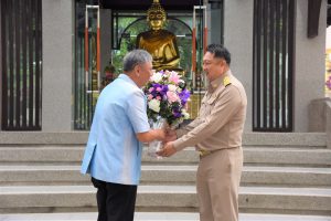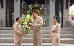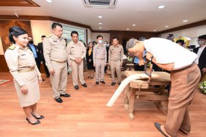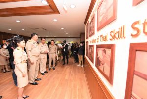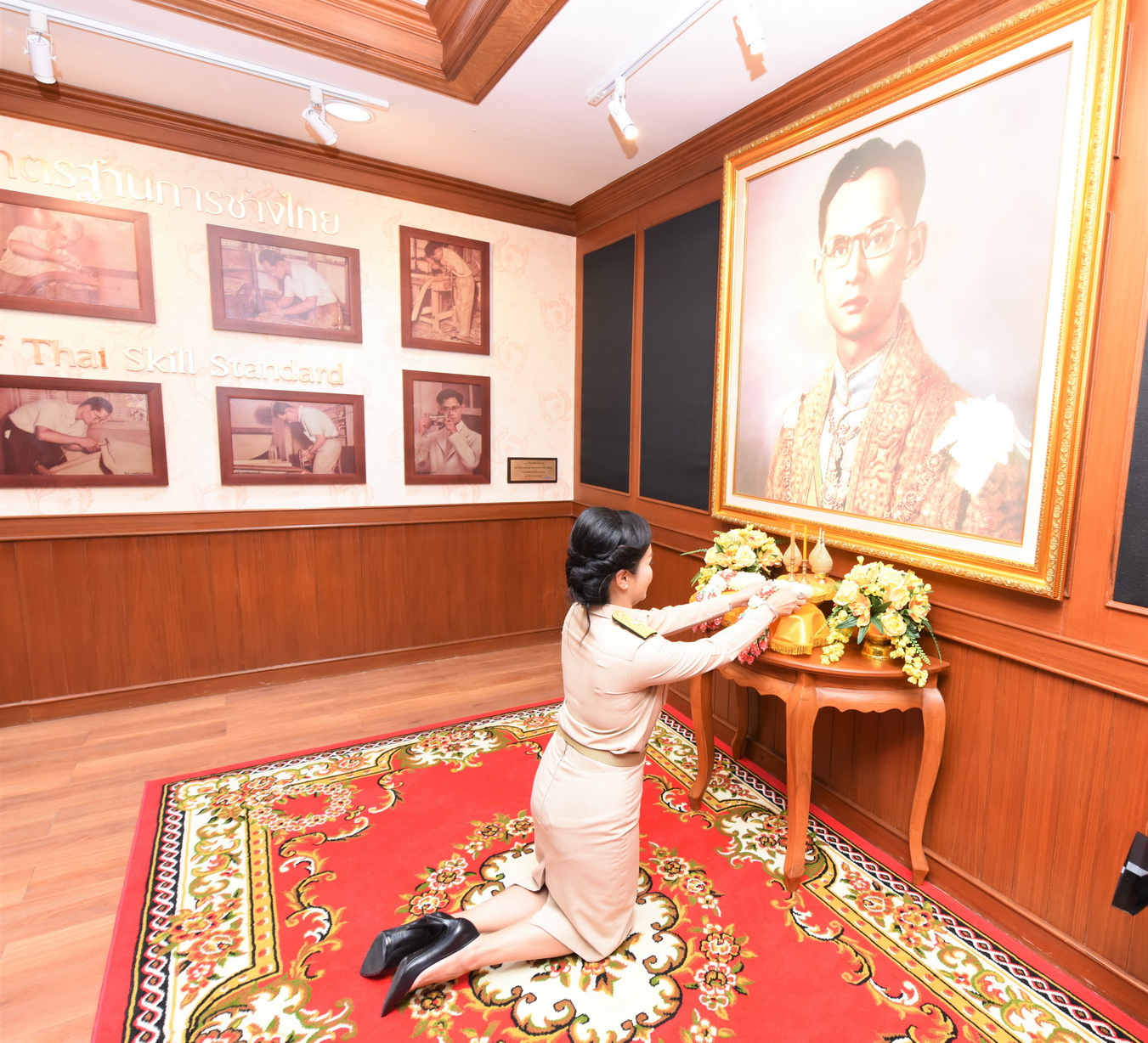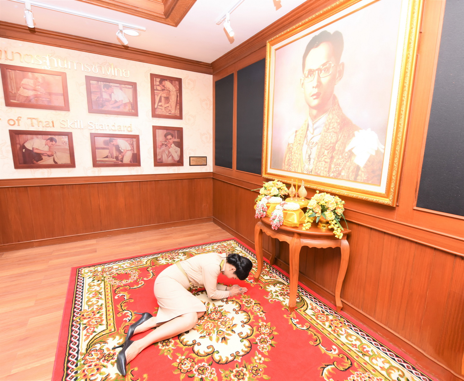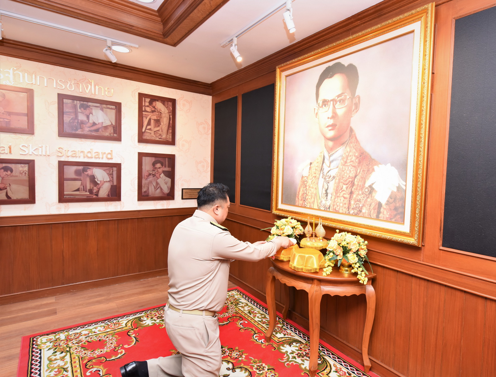 จากนั้น รมว.แรงงาน ได้ไปสักการะพระบรมฉายาสาทิสลักษณ์ พระบาทสมเด็จพระบรมชนกาธิเบศร มหาภูมิพลอดุลยเดชมหาราช บรมนาถบพิตร ณ ห้องแสดงนิทรรศการ “พระบิดาแห่งมาตรฐานการช่างไทย” บริเวณ ชั้น ๒ อาคารศูนย์บริการจัดหางานเพื่อคนไทย (Smart Job Center) เพื่อเป็นการสำนึกในพระมหากรุณาธิคุณของพระบาทสมเด็จพระบรมชนกาธิเบศร มหาภูมิพลอดุลยเดชมหาราช บรมนาถบพิตร ซึ่งคณะรัฐมนตรีมีมติเมื่อวันที่ ๑๗ กุมภาพันธ์ ๒๕๕๒ เห็นชอบให้ถวายพระราชสมัญญา“พระบิดาแห่งมาตรฐานการช่างไทย” แด่พระบาทสมเด็จพระบรมชนกาธิเบศร มหาภูมิพลอดุลยเดชมหาราช บรมนาถบพิตร และกำหนดให้วันที่ ๒ มีนาคมของทุกปี เป็นวันมาตรฐานฝีมือแรงงานแห่งชาติ รวมทั้งเป็นการเทิดพระเกียรติพระบาทสมเด็จพระบรมชนกาธิเบศร มหาภูมิพลอดุลยเดชมหาราช บรมนาถบพิตร ที่มีพระมหากรุณาธิคุณต่อปวงชนชาวไทย และทรงพระปรีชาสามารถด้านการช่าง รวมทั้ง ทรงให้ความสำคัญในการพัฒนาฝีมือแรงงานของช่างไทยให้มีความเป็นมาตรฐาน