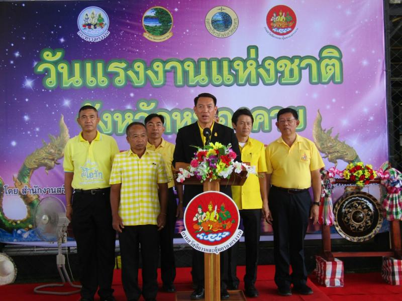 นายจิรศักดิ์ ศรีคชา รองผู้ว่าราชการจังหวัดหนองคาย เปิดเผยว่า รัฐบาลได้ตระหนักถึงความสำคัญในบทบาทของผู้ใช้แรงงาน ที่เป็นกำลังหลักในการขับเคลื่อนเศรษฐกิจ และสร้างสรรค์ความเจริญรุ่งเรืองให้กับประเทศชาติตลอดมา จึงได้กำหนดให้วันที่ ๑ พฤษภาคมของทุกๆ ปี เป็น “วันแรงงาน” ซึ่งถือว่าเป็นวันที่มีความสำคัญของบรรดาพี่น้องผู้ใช้แรงงานไทยและผู้ใช้แรงงานทั่วโลก และสนับสนุนให้มีการจัดงานในวันแรงงานแห่งชาติขึ้น ทั้งในส่วนกลางและส่วนภูมิภาค กิจกรรมที่จัดให้มีขึ้นในวันนี้ ได้สะท้อนภาพลักษณ์และเจตนารมณ์ของทุกภาคส่วน ที่ได้รวมพลังกันเพื่อส่งเสริมให้เกิดความสมานฉันท์ ความรัก สามัคคี ทั้งภายในองค์กรและระหว่างองค์กร รวมทั้งส่งเสริมสุขภาพ ปลูกจิตสำนึกด้านต่างๆในการเดินรณรงค์ด้านต่างๆในนามจังหวัดหนองคายขอขอบคุณทุกภาคส่วนที่มีส่วนร่วมในการจัดงานในวันนี้ ได้แก่ สำนักงานสวัสดิการและคุ้มครองแรงงานจังหวัดหนองคายและทีม 5 เสือแรงงานจังหวัดหนองคาย องค์การบริหารส่วนจังหวัดหนองคายที่สนับสนุนงบประมาณในการจัดงาน รวมทั้งนายจ้าง ลูกจ้าง สถานประกอบกิจการทุกแห่ง ที่ให้ความร่วมมือและสนับสนุนการจัดกิจกรรมต่างๆ ในวันนี้ให้เป็นไปด้วยความเรียบร้อย ในโอกาสวันสำคัญของผู้ใช้แรงงานในวันนี้ ขออาราธนาคุณพระศรีรัตนตรัยและอำนาจศักดิ์สิทธิ์ทั้งหลายที่ทุกท่านเคารพนับถือ โดยเฉพาะขออ้างคุณพระบารมีของหลวงพ่อพระใส โปรดปกป้องคุ้มครองให้พี่น้องผู้ใช้แรงงานและครอบครัว ตลอดทั้งพี่น้องประชาชนทุกคน จงประสบแต่ความสุข ความเจริญ และสัมฤทธิผลในสิ่งอันพึ่งปรารถนาทุกประการ และเป็นพลังสำคัญในการสร้างสรรค์พัฒนาเศรษฐกิจ และสร้างสรรค์สังคมไทย โดยเฉพาะจังหวัดหนองคาย ให้เจริญรุ่งเรืองยิ่งๆ ขึ้นไป