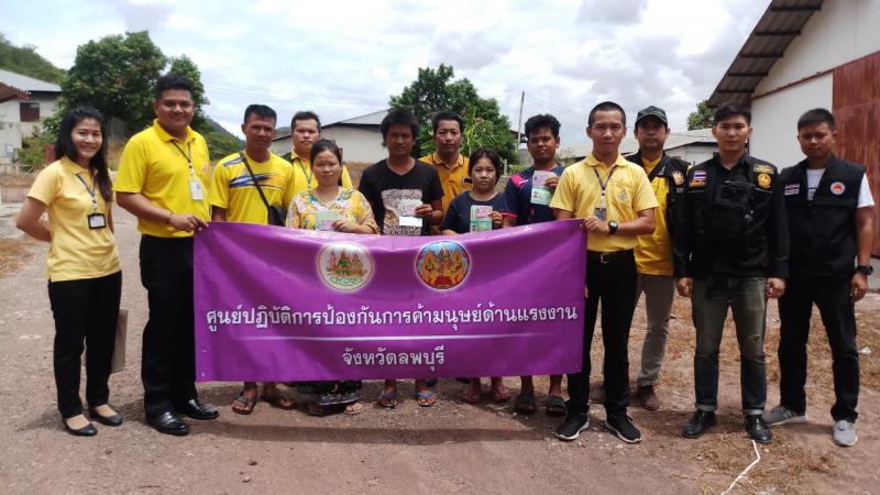 วันอังคารที่ 18 มิถุนายน 2562 เวลา 09.00 น. นางสาวปาริชาติ สวนใจ แรงงานจังหวัดอุตรดิตถ์ รักษาราชการแทน แรงงานจังหวัดลพบุรี มอบหมายให้ นายศักดา จันดี นักวิชาการแรงงานปฏิบัติการ พร้อมด้วย หน่วยงานสังกัดกระทรวงแรงงานจังหวัดลพบุรี และเจ้าหน้าที่ฝ่ายความมั่นคงที่ทำการปกครองอำเภอโคกเจริญ ร่วมออกตรวจบูรณาการป้องกันการค้ามนุษย์ด้านแรงงานจังหวัดลพบุรี ครั้งที่ 8 อำเภอโคกเจริญ ในสถานประกอบการกลุ่มเสี่ยง จำนวน 2 แห่ง แรงงาน 13 คน (แรงงานไทย 9 คน แรงงานต่างด้าว 4 คน) ผลการออกตรวจไม่พบการกระทำความผิด มีใบอนุญาตถูกต้อง เจ้าหน้าที่ได้ให้คำแนะนำเรื่องการประกันสังคม การแจ้งออกของแรงงานต่างด้าว และการต่ออายุใบอนุญาตทำงานตาม MOU