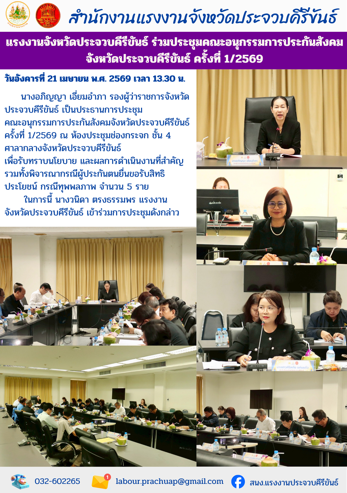 แรงงานจังหวัดประจวบคีรีขันธ์ ร่วมประชุมคณะอนุกรรมการประกันสังคม จังหวัดประจวบคีรีขันธ์ ครั้งที่ 1/2569