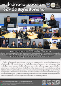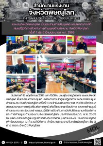 แรงงานจังหวัดพิษณุโลก เป็นประธานการประชุมคณะกรรมการภายใต้ ศูนย์ปฏิบัติการป้องกันการค้ามนุษย์ด้านแรงงาน จังหวัดพิษณุโลก ครั้งที่ 1 ประจำปีงบประมาณ พ.ศ. 2569