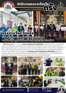 แรงงานจังหวัดตรัง เข้าพบผู้บริหาร “โรงแรมเรือรัษฎา ตรัง” และ “บริษัท บิ๊กซี ซูเปอร์เซ็นเตอร์ จำกัด (มหาชน) สาขาตรัง” เพื่อขับเคลื่อนโครงการรณรงค์ป้องกันและแก้ไขปัญหา ยาเสพติด To Be Number One จังหวัดตรัง