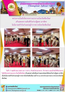 หน่วยงานสังกัดกระทรวงแรงงานจังหวัดเชียงใหม่ เข้าแสดงความยินดีกับท่านรัฐพล นราดิศร ในโอกาศเข้ารับตำแหน่งผู้ว่าราชการจังหวัดเชียงใหม่