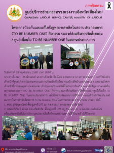 โครงการป้องกันและแก้ไขปัญหายาเสพติดในสถานประกอบการ (TO BE NUMBER ONE) กิจกรรม รณรงค์ส่งเสริมการจัดตั้งชมรม/ศูนย์เพื่อนใจ TO BE NUMBER ONE ในสถานประกอบการ