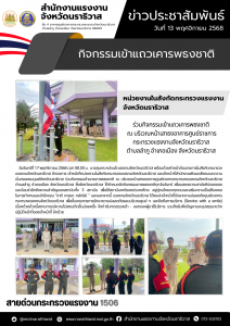 หน่วยงานในสังกัดกระทรวงแรงงานจังหวัดนราธิวาส ร่วมกิจกรรมเข้าแถวเคารพธงชาติ ณ บริเวณหน้าเสาธงอาคารศูนย์ราชการกระทรวงแรงงานจังหวัดนราธิวาส ตำบลลำภู อำเภอเมือง จังหวัดนราธิวาส