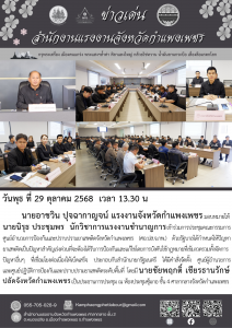 สำนักงานแรงงานจังหวัดกำแพงเพชร ร่วมประชุมเชิงปฏิบัติการเสริมสร้างพลังภาคีเครือข่ายเพื่อขับเคลื่อนองค์กรสุขภาวะในสถานประกอบกิจการฯ