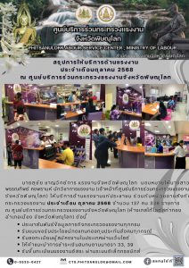 สรุปการให้บริการด้านแรงงาน ประจำเดือนตุลาคม 2568 ณ ศูนย์บริการร่วมกระทรวงแรงงานจังหวัดพิษณุโลก