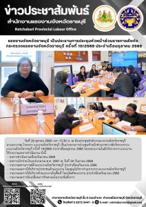 แรงงานจังหวัดราชบุรี เป็นประธานการประชุมการจัดทำแผนปฏิบัติการป้องกันการบังคับใช้แรงงานหรือบริการ และการค้ามนุษย์ด้านแรงงานจังหวัดราชบุรี ประจำปี พ.ศ. 2569
